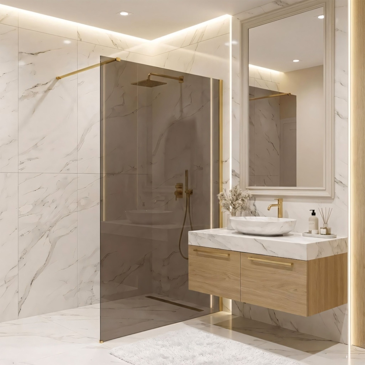 Îți dorești o baie plină de căldură și rafinament? Descoperă peretele de duș walk-in Rea Flexi într-o configurație deosebită: sticlă în nuanța Smoked Brown și profil în culoarea Brushed Gold. Această combinație între o formă modernă și un finisaj elegant oferă interiorului un caracter unic. Construcția din sticlă securizată de 8 mm asigură durabilitate și stabilitate.Sticlă securizată 8 mm (Smoked Brown) – sticlă groasă și sigură, cu tentă maro, care aduce căldură în spațiu și oferă intimitate.Profil de aluminiu Brushed Gold – finisaj de lux, periat, al profilului și al brațului de susținere, ce se îmbină perfect cu panoul de sticlă maro.Strat Easy Clean – barieră hidrofobă invizibilă, ce facilitează scurgerea apei și protejează împotriva depunerilor de săpun și calcar.Braț de susținere 120 cm, cu posibilitate de scurtare – brațul superior, auriu, poate fi tăiat pentru a adapta adâncimea cabinei de duș la nevoile individuale.Montaj universal – peretele poate fi instalat atât pe partea dreaptă, cât și pe partea stângă, pe cadă de duș sau direct pe pardoseală.Construcție walk-in – acces modern, deschis, fără elemente mobile, ce garantează confort și fiabilitate.Peretele de duș Rea Flexi este o propunere ideală pentru persoanele care caută un stil rafinat. Detaliile aurii combinate cu sticla maro creează o zonă de duș cu un ambient deosebit. Datorită stratului Easy Clean și materialelor solide, acest produs îmbină estetica de nivel înalt cu funcționalitatea de zi cu zi. Dimensiune (usa x perete): 140 Culoare: Auriu periat Tip cabina: Walk-in Culoare sticla: bronz fumuriu 6mm Seria: Flexi Montaj: de cada sau de podea Inaltime (mm): 1950 Directie cabina: Universal Garantie: 24 luni Acoperire Easy Clean: Da , pe o parte a geamului