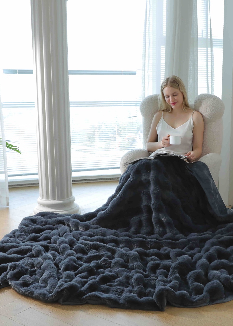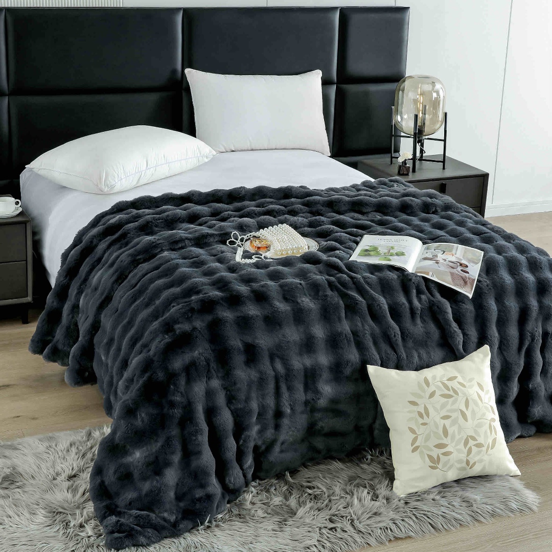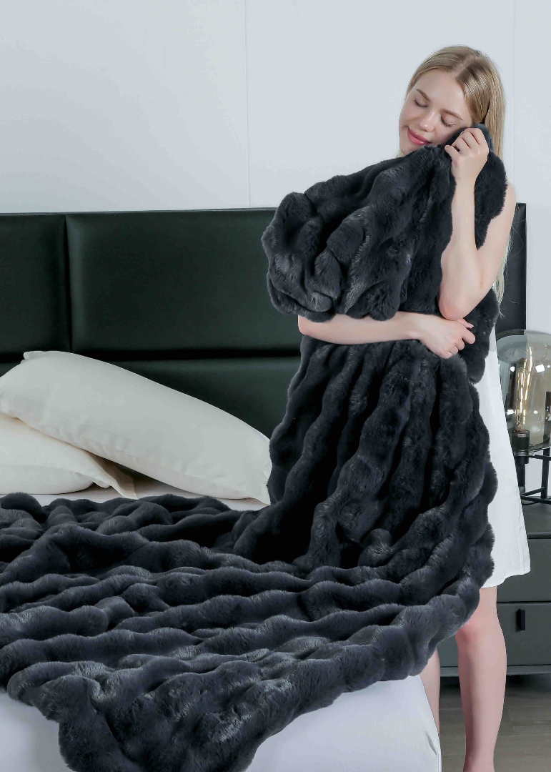 Patura cu Blanita Artificiala Tip Iepure, cu Fermoar – 200 x 230 cm Alege o patura care imbina rafinamentul estetic cu functionalitatea moderna. Realizata din blanita artificiala de tip iepure, extrem de moale si placuta la atingere, aceasta patura este ideala pentru serile racoroase, decor sofisticat sau un cadou cu adevarat special. Caracteristici principale: Dimensiuni generoase:- 200 x 230 cm – perfecta pentru canapea, pat matrimonial sau pentru a te inveli complet in serile re