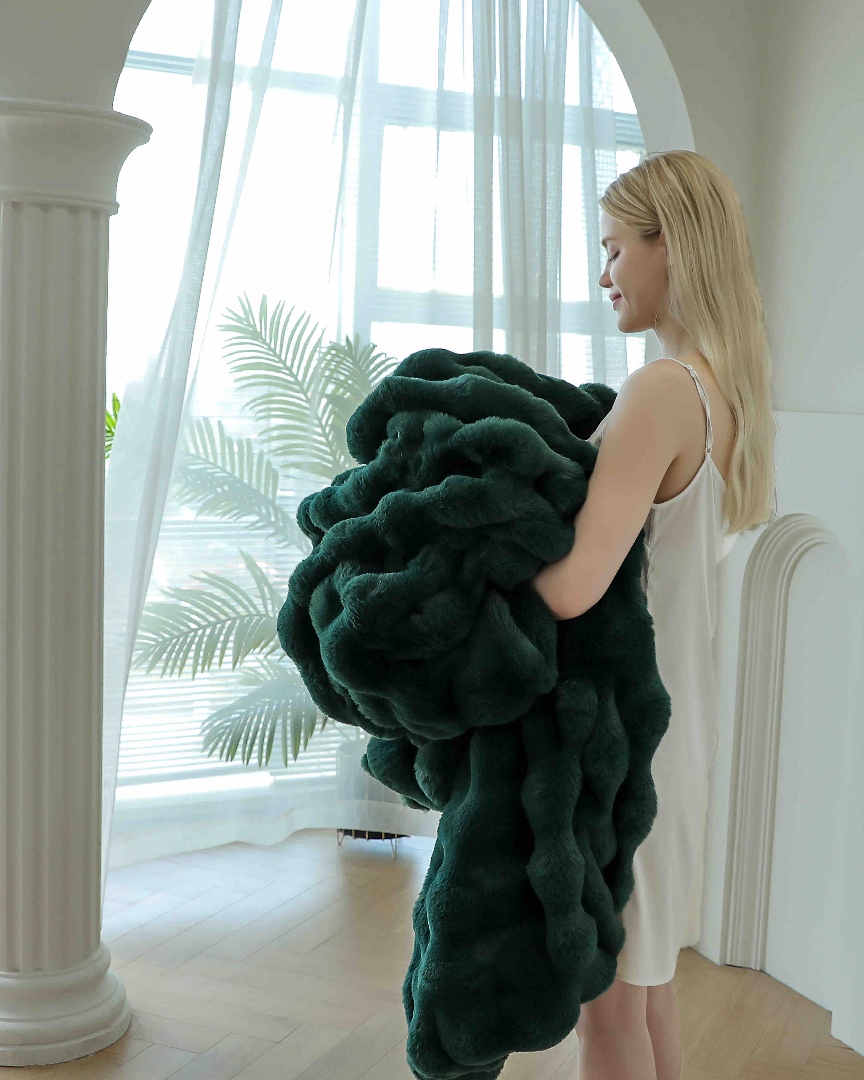 Patura cu Blanita Artificiala Tip Iepure, cu Fermoar – 200 x 230 cm Alege o patura care imbina rafinamentul estetic cu functionalitatea moderna. Realizata din blanita artificiala de tip iepure, extrem de moale si placuta la atingere, aceasta patura este ideala pentru serile racoroase, decor sofisticat sau un cadou cu adevarat special. Caracteristici principale: Dimensiuni generoase:- 200 x 230 cm – perfecta pentru canapea, pat matrimonial sau pentru a te inveli complet in serile re