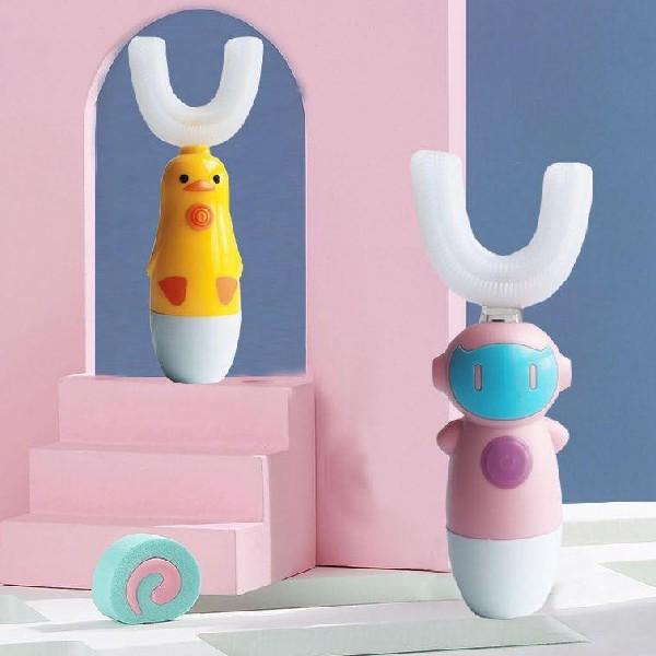 Periuta de dinti electrica pentru copii, forma de U Periuta electrica copii U-Shaped Periuta de dinti electrica pentru copii, cu incarcare USB, 4 viteze - este conceputa in forma de U, care este conturata in forma unei muscaturi de dinte si poate ajunge intr-o zona mai adanca decat periuta de dinti obisnuita. Combinand vibratia undelor sonore de inalta frecventa, poate curata rapid si profund suprafata si interiorul dintilor in toate directiile, oferind protectie pentru sanatatea dentara. Specificatii produs: Baterie folosita: 1 x AAA - nu este inclusa 2 moduri de functionare (mediu, scazut) Tip miscare Sonica Numar capete incluse 1 Bluetooth: Nu Numar rotatii pe minut: 20.000 - 60.000 RPM greutate si dimensiuni reduse - 5 x 13 cm Varsta potrivita: 2-7 ani Periuta de dinti electrica draguta pentru copii: capul unic de perie in forma de U se potriveste perfect dintilor copiilor si curata bine. Perii moi din silicon de calitate alimentara sunt suficient de blanzi pentru a fi utilizati pe dintii sensibili ai copiilor. Tema draguta a desenelor animate si manerul mini-periutei de dinti usor de tinut fac experienta de periaj convenabila si distractiva pentru copii. Sa-ti faci copilul sa se spele pe dinti nu este niciodata o problema. Curatare cu ultrasunete la 360 de grade: Aceasta periuta de dinti in forma de U este special conceputa pentru vibratii cu eficienta scazuta. Cronometrarea inteligenta poate fi finalizata la fiecare 45 de secunde. Acoperiti fiecare parte la 360 de grade pentru a asigura curatenia fara a afecta cavitatea bucala. Rezistent la apa: tehnologia impermeabila va permite sa curatati si sa curatati instantaneu aceasta periuta de dinti, ceea ce este foarte simplu si convenabil. Acest produs are dimensiuni mici si greutate redusa, ceea ce este foarte convenabil de transportat.