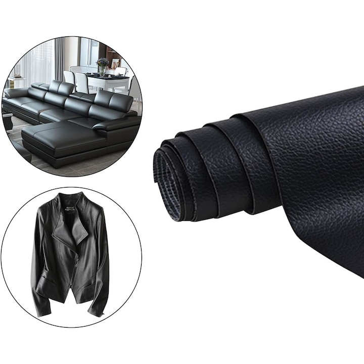 Piele artificiala autoadeziva Dimensiune 45 x 300 cm, Negru Folie adeziva din piele ecologica Ideala pentru reconditionare si retapitare articole din piele. S-a deteriorat tapiteria din piele a canapelei si acum arata foarte urat? Vrei sa poti reconditiona un scaun, un fotoliu sau chiar anumite parti din interiorul masinii, fara prea mari batai de cap? Avem noi solutia! Piele sintetica (artificiala) este o tesatura (bumbac sau poliester) pe care se aplica un strat „respirabil” de spuma poliuretanica cu micropori prinsi. Este un material destinat substituirii pielii in tapiterie, imbracaminte, incaltaminte si alte utilizari in care se doreste un finisaj asemanator pielii. Folie adeziva din piele ecologica pentru reconditionare Reconditionare mobila, canapea, scaune, fotoliu, interior auto, laptop, etc. Compozitie: 100% PVC, Baza – poliester Dimensiune 45 cm x 300 cm Produs autocolant - DA Aspect natural, moale si flexibila Grosime folie: 0,8 mm