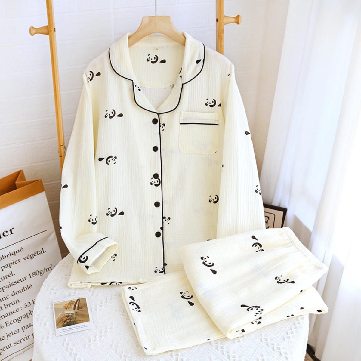 Pijamale create pentru confort și relaxare, realizate din materiale moi și plăcute la atingere. Design feminin, croială lejeră și finisaje atent alese, ideale pentru nopți liniștite și momente de răsfăț acasă. Lungime: lunga; Lungime maneca: cu maneci lungi; Guler: guler tip V; Stil: drept pe picioare; Material: bumbac 100%; Bucati: 2 buc. Important: Culoarea produsului poate varia ușor datorită luminozității monitorului. Din cauza varietății instrumentelor de măsură, pot exista ușoare erori de cm, informațiile de mai sus sunt aproximative.