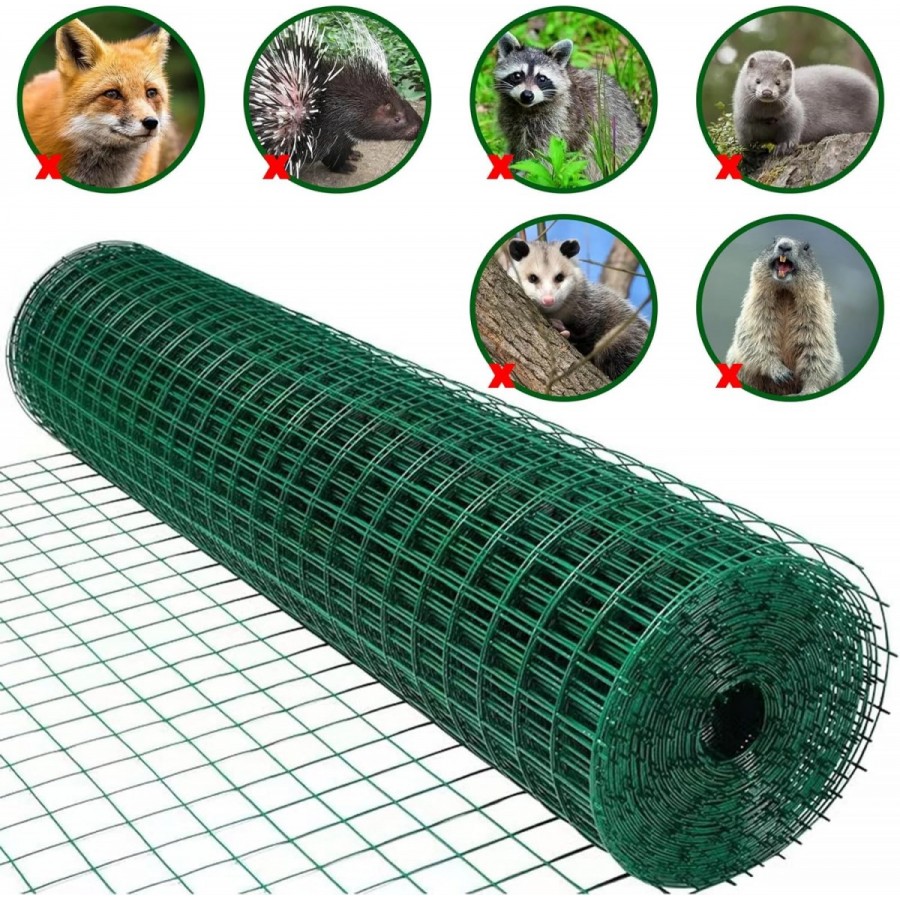 Plasa verde din sarma sudata plastifiata Dimensiune: 1.2 m latime x 10 m lungime Ochi 16 x 16 mm, grosime 1.2 mm Plasa Sarma Sudata Plastifiata este confectionata din sarma de otel sudata, cu grosimea de 1 mm si imbracata intr-un strat PVC pentru protectie indelungata contra intemperiilor. Utilizare: gradini cotete pasari custi animale mici de curte armare structuri constructii imprejmuiri patule porumb, etc Caracteristici: latime: 1.2 m / 1.5 m lungime: 10 m culoare: verde material: metal si PVC arma plastifiata diametru sarma: 1.2 mm dimensiune ochi: 16 x 16 mm (lungime x latime)
