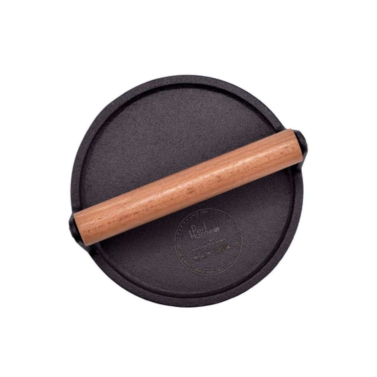 Presă pentru Carne din Fontă, 18 cm – Ideală pentru Gătit Carne, Hamburger sau Grătar și Grill Obține rezultate perfecte în prepararea cărnii cu această presă din fontă de 18 cm, un instrument esențial pentru orice iubitor de gătit. Ideală pentru utilizarea pe grill sau pe grătar, această presă din fontă ajută la obținerea unei gătiri uniforme a cărnii, menținând suculența și aromele naturale. Caracteristici principale: Dimensiune de 18 cm: Ușor de manevrat și suficient de mare pentru a acoperi porțiile de carne, asigurând o presare uniformă. Fontă de calitate superioară: Realizată din fontă durabilă, care reține și distribuie căldura uniform, oferind rezultate excelente pentru carne fragedă și suculentă. Gătire uniformă: Presa ajută la gătirea uniformă a cărnii pe grill sau grătar, reducând timpul de gătire și obținând linii și texturi caracteristice de grill. Ergonomie și durabilitate: Mânerul ergonomic și designul robust asigură o utilizare confortabilă și sigură pe termen lung. Ideală pentru grătar și carne la grill: Folosește această presă pentru carne pentru a obține rezultate de calitate profesională, fie că gătești carne, legume sau preparate din pește. Perfectă pentru iubitorii de gătit pe grătar sau grill, această presă din fontă este un accesoriu indispensabil în orice bucătărie, garantând rezultate de top și o gătire excelentă a cărnii.