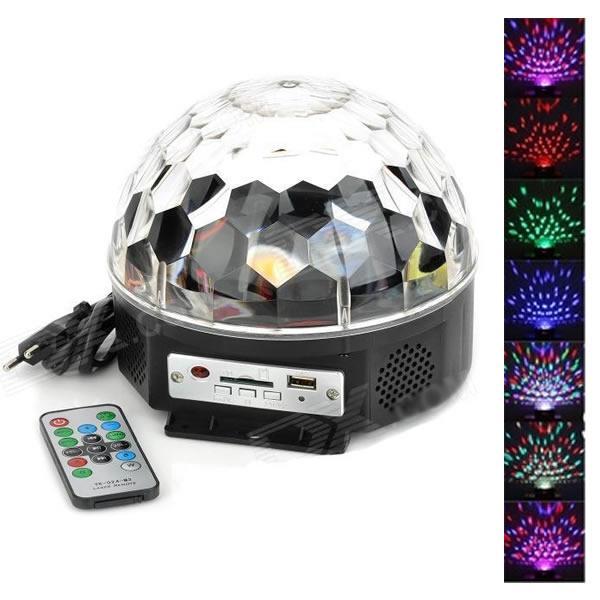 Proiector Disco Led Magic Ball Light Telecomanda inclusa si Redare Audio MP3 Glob de lumini disco tip laser disco cu telecomanda - redare audio mp3 globul reda fisiere in format audio: mp3 si multe alte formate audio cunoscute aflate pe memoria usb conectata la portul usb. produsul este conceput pentru a acoperi toate unghiurile cu lumina. efectele sunt de o calitate inalta, fapt datorat tehnologiei led care imbina sub forme de lupa nu mai putin de 82 fascicule sferice creand astfel o atmosfera unica. exteriorul dispozitivului este rezistent, astfel incat componentele sensibile din interior sa fie protejate. Unde puteti amplasa acest proiector glob disco led: discoteca club cafenea bar restaurant petrecere in familie locuinta proprie ambiental Specificatii proiector disco led audio mp3 cu telecomanda: duprafata transparenta din cristal (material plastic) ficare fasciol din cele 82 iese din glob printr-o lupa, efectul fiind mult mai elevat efectele speciale de spalare si proiectare a luminii posibilitate de amplasare atat in plan orizontal la nivelul solului cat si in plan vertical pe perete sau obiecte inalte de sustinere. 6 leduri de calitate superioara cate doua din urmatoarele culori: rosu, albastru, verde diverse moduri de functionare masuratori ale globului: 183 x 183 x 154 mm greutate: 550 grame redare fisiere audio, atat mp3 cat si multe alte formate stick cu muzica pentru teste oferit cadou functioneaza in mod continuu o noapte intreaga, pana dimineata fara a manifesta probleme tehnice in conditii de fum functioneaza in conditii normale la prizele din Romania de 220V putere leduri RGB: 6 x 3W, putere totala 18W-24W telecomanda cu baterie inclusa port USB pentru citirea stickurilor si a altor memorii usb slot card SD pentru introducerea de carduri cu muzica butoane de control aflate pe glob: Inapoi, Volum Scazut, Redare, Pauza, Inainte, Volum Ridicat Pachetul contine: proiector glob RGB de lumini cu led sico telecomanda stick-ul de memorie nu este inclus in oferta