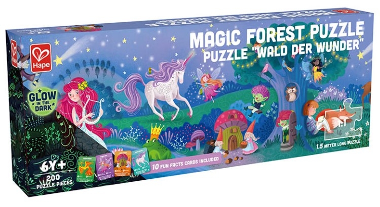 Puzzle pentru copii fosforescent cu Zane (200 piese). Da viata creaturilor imaginare preferate ale copilului tau cu acest puzzle de padure magica colorat si care straluceste in intuneric! Intinzandu-se pe o lungime de aproape 1,5 metri, copiilor le va placea sa puna impreuna cele 200 de piese ale puzzle-ului din nou si din nou. Copiii iubesc culorile si peisajul vii, plus stelele si contururile care stralucesc in intuneric dezvaluite atunci cand opriti intrerupatorul luminii. Este plin de unicorn, troli, zane de flori si multe altele.Acest puzzle include si 10 carti pline cu „fapte” distractive despre prietenii lor magici. Intreaba-l pe micutul tau care personaj ii place cel mai mult!Incurajeaza imaginatia infloritoare si abilitatile de povestire ale copilului tau cu acest puzzle frumos. Ajutati-i sa-si dezvolte abilitatile motorii fine, coordonarea ochi-mana si abilitatile de rezolvare a problemelor.