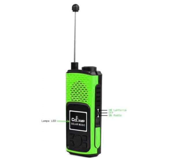 Radio portabil cu lanterna, CC Lamp CL-601 Alimentare duala solar si retea Bluetooth Lanterna Conectare USB 2.0 Conectare micro USB TF card, TWS LINK+ Putere 5W Frecventa: 100 Hz - 20 KHz Semnal de raspuns 280 dB Alimentare: solara si 5V 1A Bluetooth: 10 metri Dimensiune difuzor: 52 mm Capacitate baterie: 1500 mah Volti: 3,7V Timp de incarcare solara: 3-6 ore