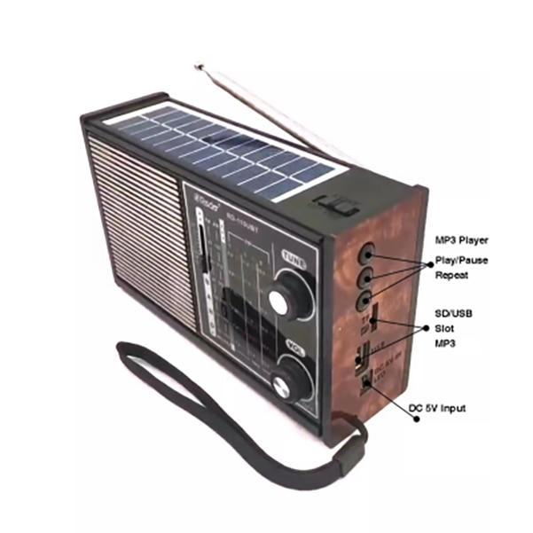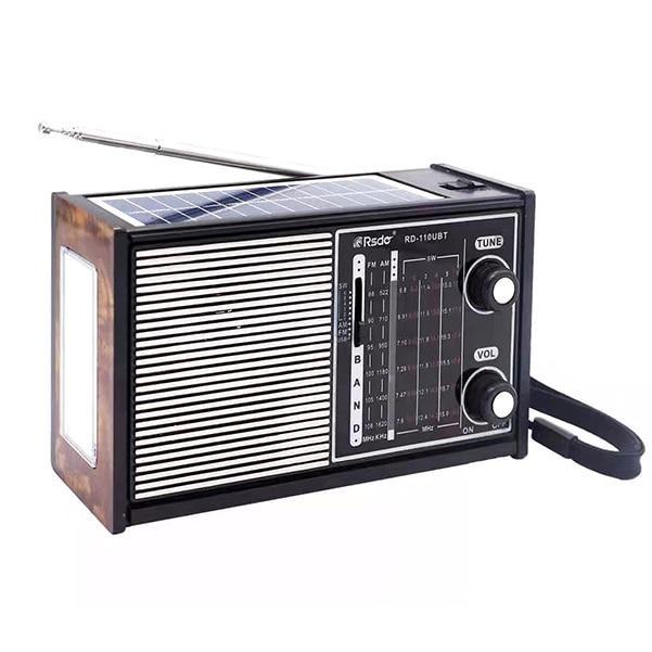 Radio portabil solar Bluetooth, MP3 player si lanterna Model RD-110UBT Radio Bluetooth MP3 player si lanterna Radio pe 3 benzi: AM/FM/SW AM 530-1600 Khz/ FM 88-108 Mhz/ SW 6.8-16 Mhz. MP3 Player cu suport pentru card SD / stick USB Antena telescopica cu sensibilitate ridicata Difuzor incorporat. putere 3W Lanterna incorporata Acumulator de mare capacitate, reincarcabil Incarcare la priza USB sau incarcator telefon cu micro USB Incarcare solara Acumulatorul se poate schimba, este de tip 18650, 1200 mAh
