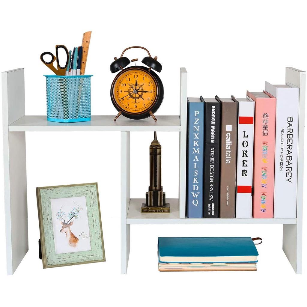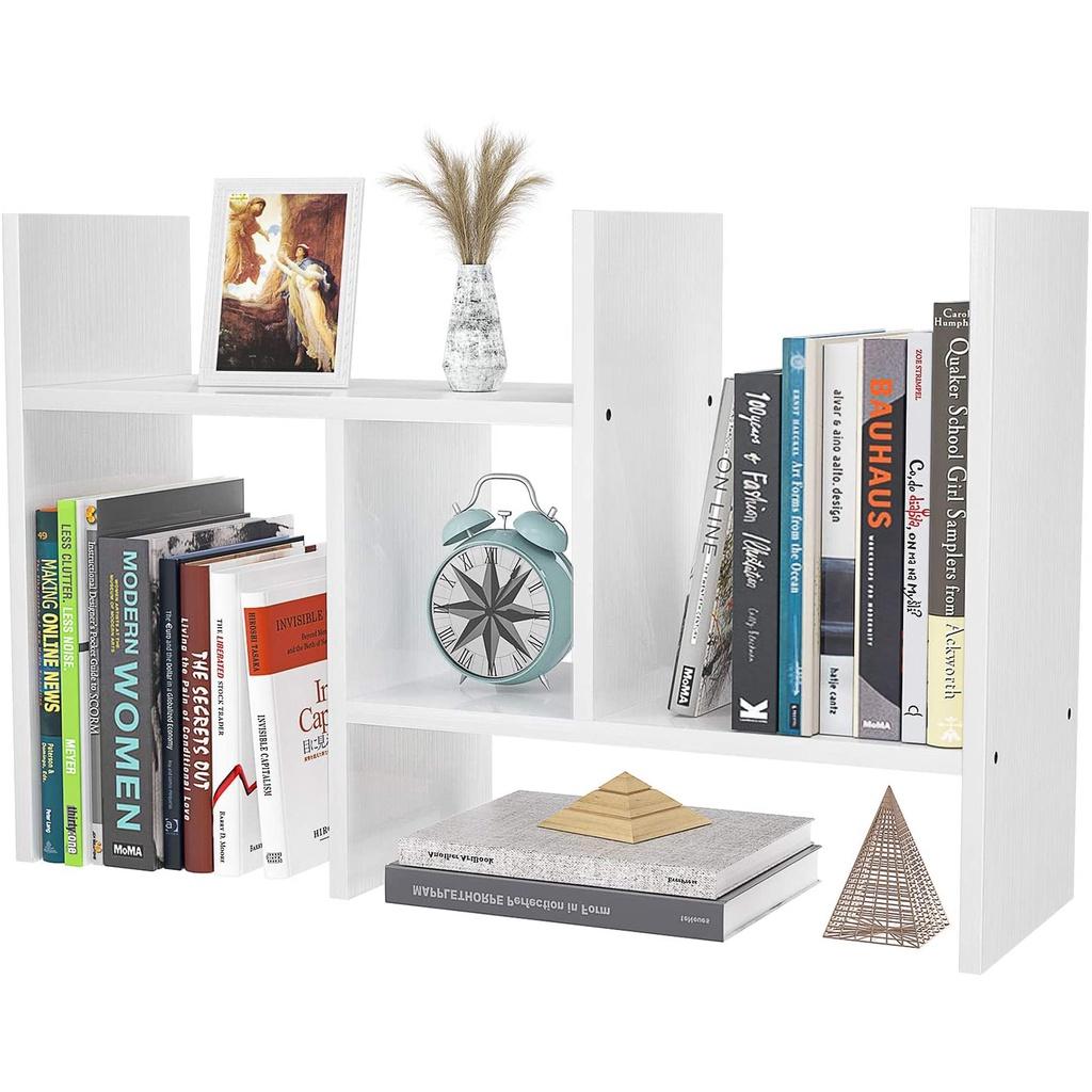 Raft depozitare carti, organizator pentru birou Dimensiuni aproximative: 32 lungime x inaltime 34 x adancime 17 Material: lemn MDF acoperit cu melamina rezistenta la zgarieturi, rezistenta la apa, usor de curatat Culoare: alb Formata din doua bucati care pot fi configurate in functie de preferinte Folosit ca raft pentru birouri sau ca obiect decorativ de organizare