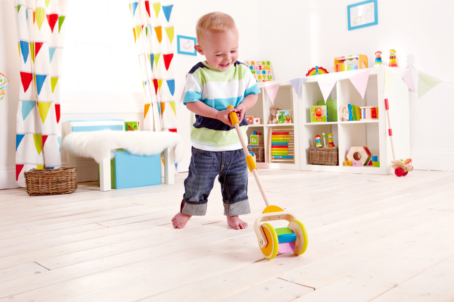 A gentle push or pull encourages running feet and a twirling rainbow of color. Gross Motor Skills (Physical Skills): Boosts coordination, balance, and physical strength.