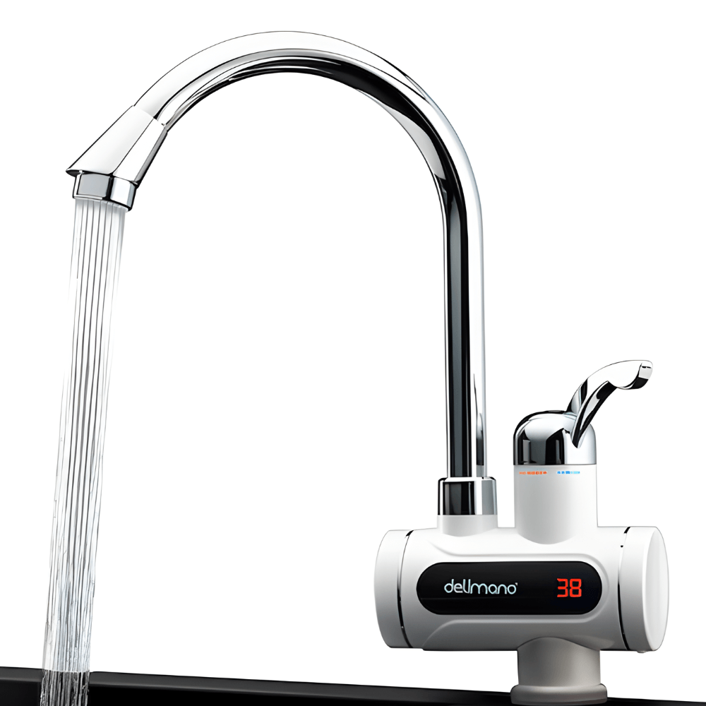 DescriereIl poti instala rapid si usor, fara ajutor profesionist.Solutia perfecta pentru locuintele in care instalatia de apa calda nu functioneazaApa fierbinte in numai cateva secundeArata ca un robinet normal, dar in interior are un element ce incalzeste apa la o temperatura de pana la 60° CPoti regla cu usurinta temperatura apei de la calduta la fierbinteCapacitate incalzire apa: 1.5 - 2l/minAfisajul digital indica temperatura actuala a apei.Obtii apa calda de la robinet in doar cateva secundeAi nevoie de apa calda la casa de weekend sau in garaj, dar nu ai acolo conducta de apa calda? Ti s-a stricat boilerul sau ai probleme cu conducta de apa calda? Cumpara Robinetul Delimano de apa calda instant, un robinet electric care incalzeste instant apa in cantitati nelimitate!Trebuie doar sa il instalezi la chiuveta, sa il introduci in priza si apa calda va incepe sa curga!Apa calda curenta de la robinet in doar cateva secundeCu Robinetul Delimano de apa calda instant e nevoie de doar cateva secunte pentru incalzirea apei. Dupa care apa calda va incepe sa curga si o poti utiliza fara intrerupere.O solutie simpla si inteligenta pentru locurile fara sisteme de incalzire a apei!Rezerva nelimitata de apa calda de pana la 60 de gradeRobinetul Delimano de apa calda instant poate incalzi apa pana la 60 de grade doar prin apasarea manerului. Becul rosu te va anunta cand poate fi folosit robinetul pentru apa calda.Daca iti trebuie apa rece, impinge doar manerul inapoi si apa rece va incepe sa curga.Simplu si convenabil de utilizat.Apa calda mai igienica intotdeauna la indemanaDaca trebuie sa incalzesti apa intr-un boiler, aceasta apa trebuie stocata o perioada lunga de timp.Cu robinetul electric de apa calda apa va ramane proaspata si gustoasa pentru ceai, supa si cafea.Foloseste-l la bucatarie, la baie, in garaj, la bucataria de vara...Cu ajutorul Sistemului de incalzire instant a apei, vei avea apa calda in doar cateva secunde.Instaleaza-l in bucatarie si vei avea apa fierbinte pentru supe, ceai sau cafea mai repede si la un cost mai mic.Instaleaza-l in pivnita, garaj sau atelier si spala murdaria de pe maini cu apa calda.Instaleaza-l in bucataria de vara si bucura-te de toate beneficiile apei calde la indemana.Robinetul Delimano de apa calda instant economiseste timp, energie si apa, nefiind nevoie de un sistem centralizat de incalzire.Tot ce ai nevoie este instalatia standard de alimentare cu apa si o priza electrica.Nu in ultimul rand - acest robinet adauga un strop de eleganta bucatariei taleDispunand de un stil plin de finete in contururi rotunjite – materialul folosit este plasticul alb cu insertii metalice – Robinetul Delimano de apa calda instant adauga un plus de eleganta bucatariei tale. Instalarea simpla deasupra chiuvetei asigura o pozitie stabila distribuitorului si este livrat impreuna cu un maner cu prindere facila care se misa inainte si inapoi pentru a regla temperatura cu usurinta.Apa de la robinet incalzita instantApa de robinet incalzita instant reduce consistent risipa de apa, timp si energie - eliminand pierderea de apa de pe conducta. Robinetul Delimano pentru apa calda instant nu are egal in bucatarie si in niciun alt loc unde apa calda este indispensabila.Control complet automat al caldurii, instalatie simpla cu spirala standardControl complet automat al caldurii, instalatie simpla cu spirala standard. Nu vei intampina dificultati sa instalezi acest dispozitiv si nici sa il mentii in functiune in bucatarie.O solutie inteligenta si practica pentru economisirea timpului, energiei si apei pretioaseEconomiseste apaSistemele obisnuite de incalzire a apei prin acumulare (boilerele) irosesc foarte multa apa din cauza unei tubulaturi de mari dimensiuni, in timp ce Robinetul Delimano pentru apa calda instant incalzeste apa direct la debit fara nicio pierdere la livelul tevilor si racordurilor.Economiseste energieRobinetul Delimano pentru apa calda instant dispune de o metoda de incalzire la distributie a apei, fara preincalzire si mentinere a temperaturii si, amintim inca o data, fara pierderi la nivelul tubulaturii.Economiseste timpApa poate fi incalzita in cateva secunde, aceasta insemnand o economie considerabila de timp. Nu mai trebuie sa astepti ca apa sa se incalzeasca.Pentru cine este recomandat?Pentru persoanele care locuiesc in apartamente fara sistem de incalzire a apeiPentru momentele cand se strica boilerul sau conducta de apa caldaPerfect pentru casele de weekend, locurile de campingPentru persoanele carora le place sa gateasca in aer liber