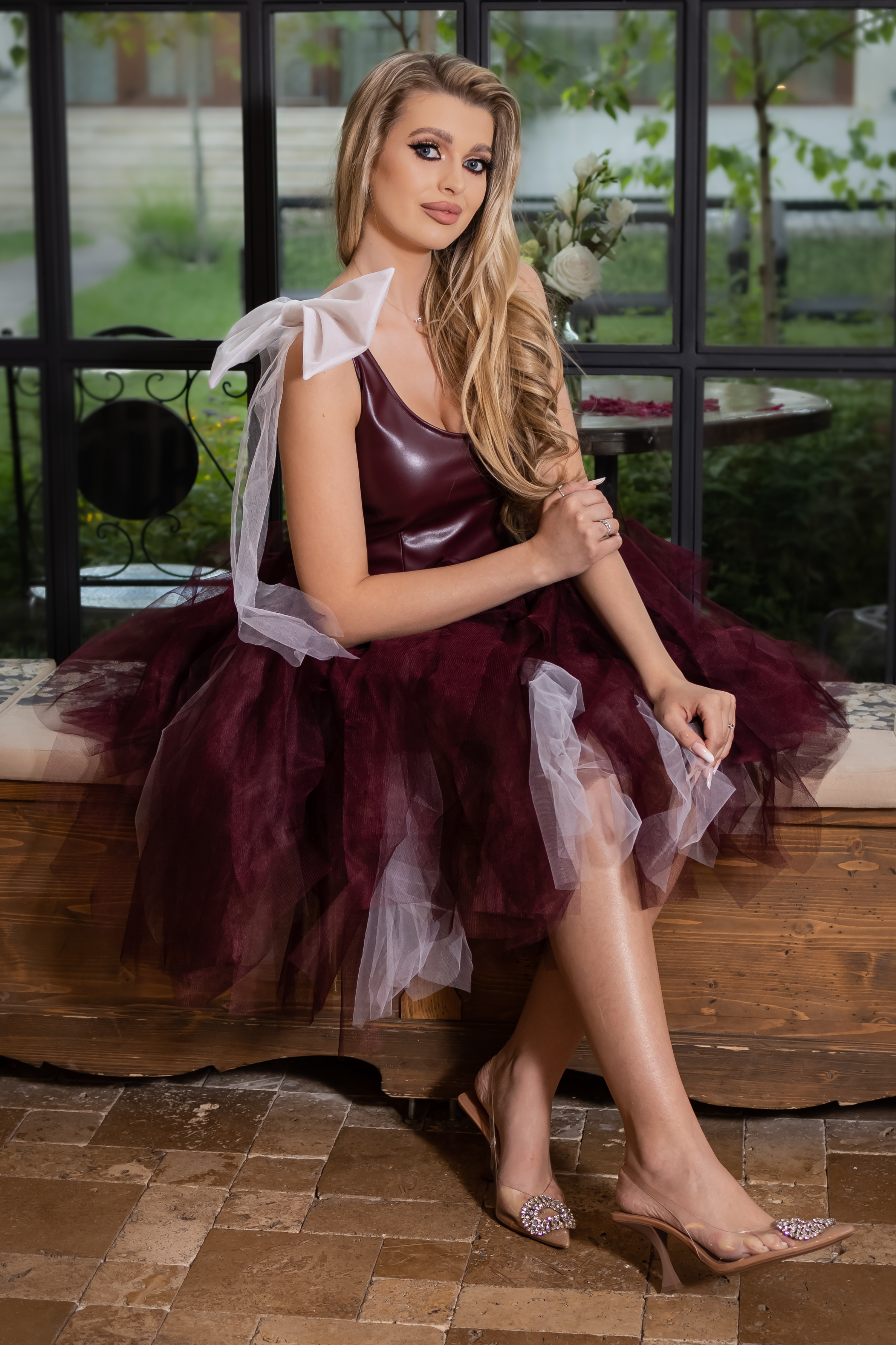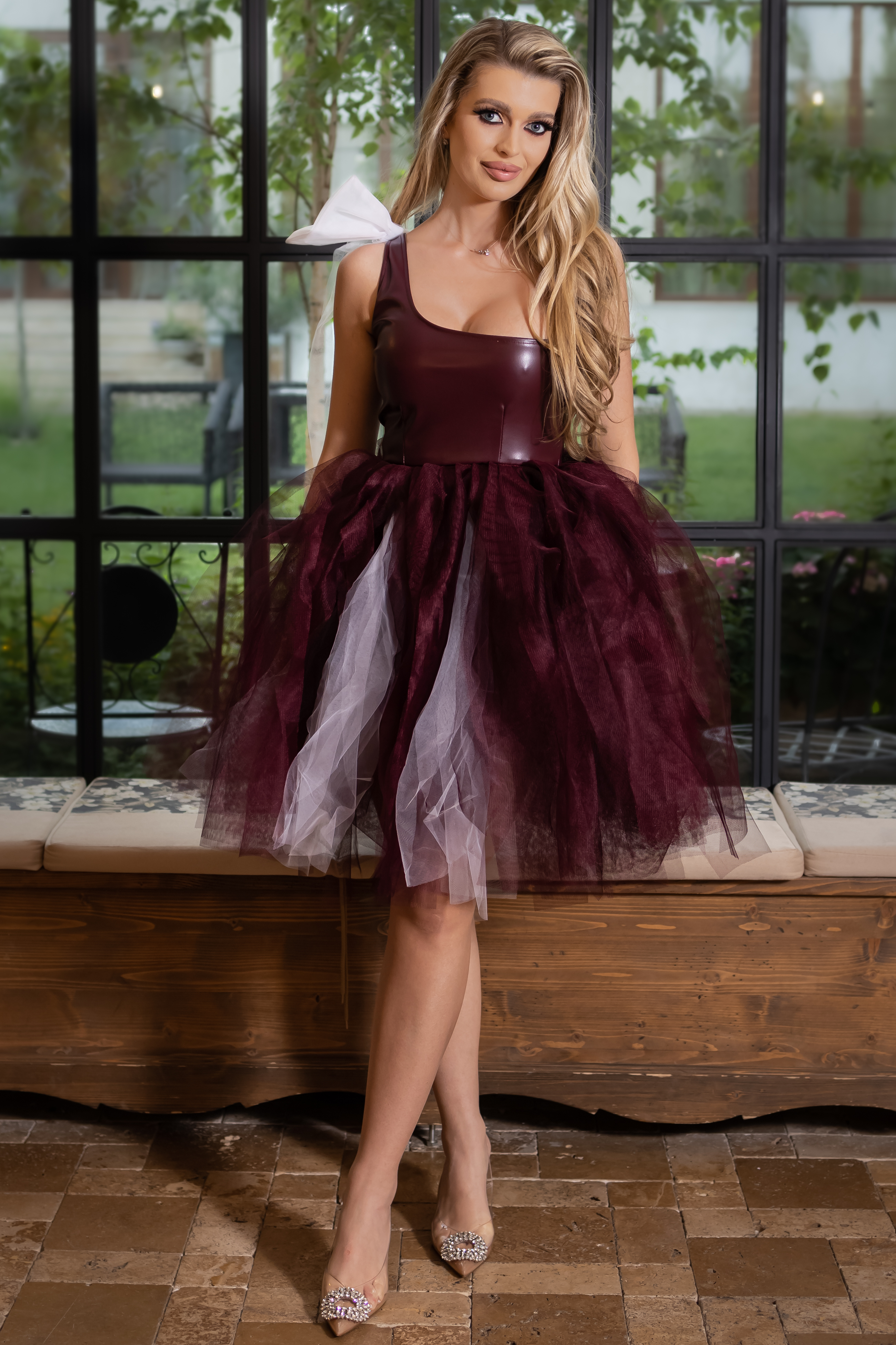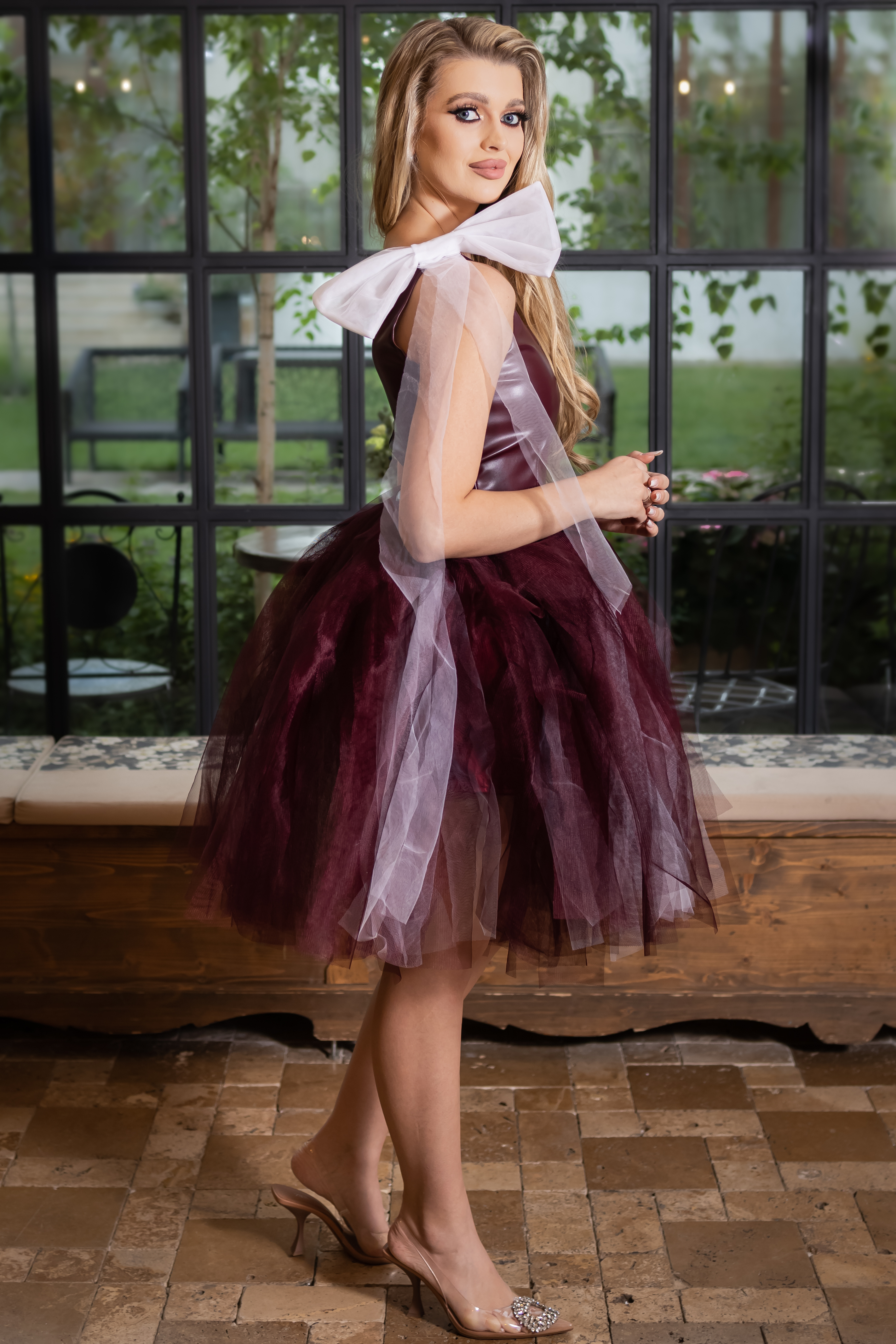 Rochie, eleganta cu corset din piele ecologica si tulle.Culoare: visiniu si albCroi: corset si croi in closTextura: piele, tulleInchidere cu fermoar la spateCompozitie: 100% poliester Modelul are 1,70 m inaltime si poarta masura S. INFO: Echipa noastra face toate eforturile in a prezenta cat mai bine culorile produselor prezentate pe site insa culorile pot diferi de situatia reala si pot varia in functie de setarile monitorului/dispozitivului dvs! Instructiuni folosire:
