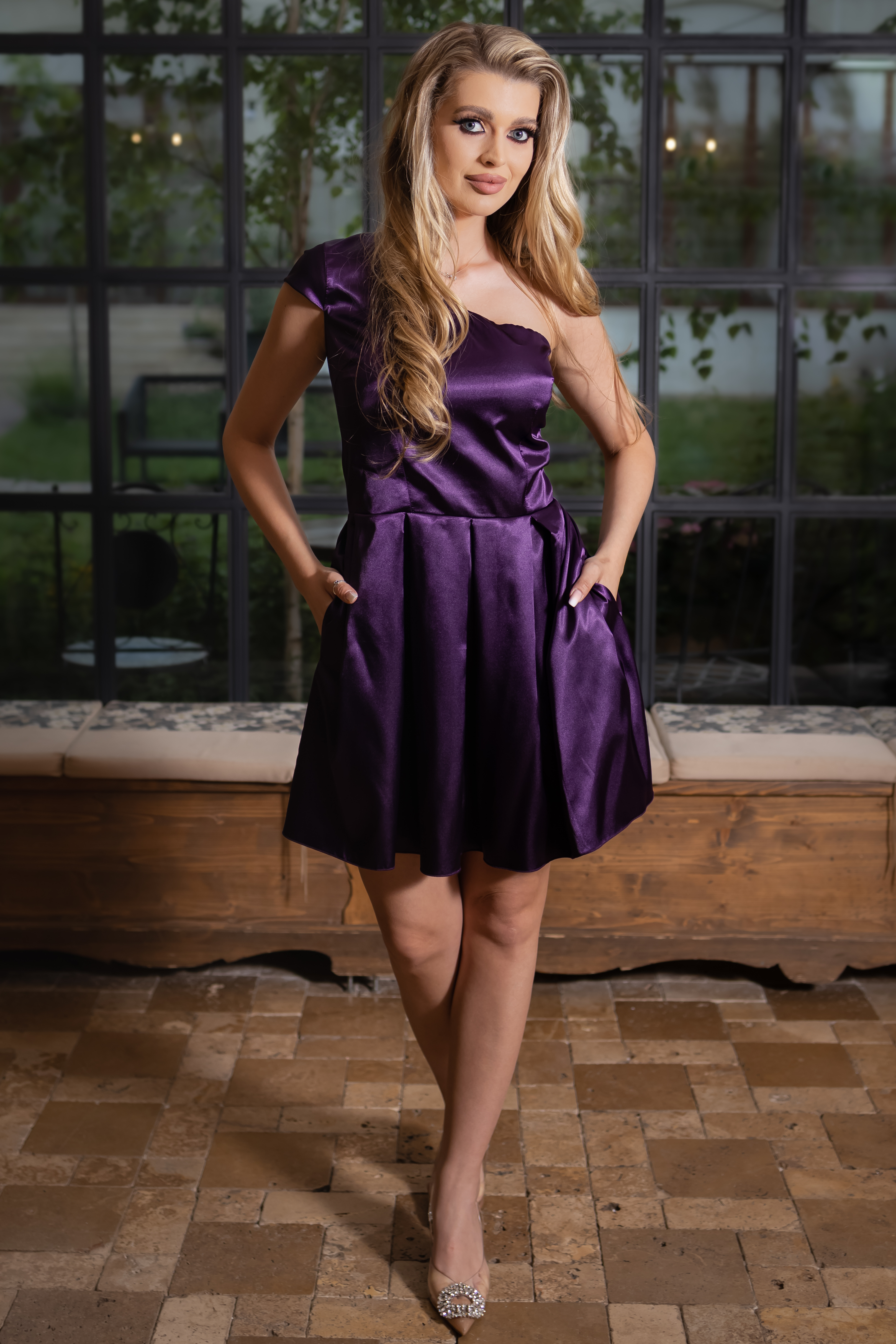 Rochie, eleganta din satin cu corsetCuloare: movCroi: corset si croi in closPe un umarTextura: satinInchidere cu fermoar la spatePrezinta dublura din satin pe interiorCompozitie: 100% poliester Modelul are 1,70 m inaltime si poarta masura S. INFO: Echipa noastra face toate eforturile in a prezenta cat mai bine culorile produselor prezentate pe site insa culorile pot diferi de situatia reala si pot varia in functie de setarile monitorului/dispozitivului dvs! Instructiuni folosire: