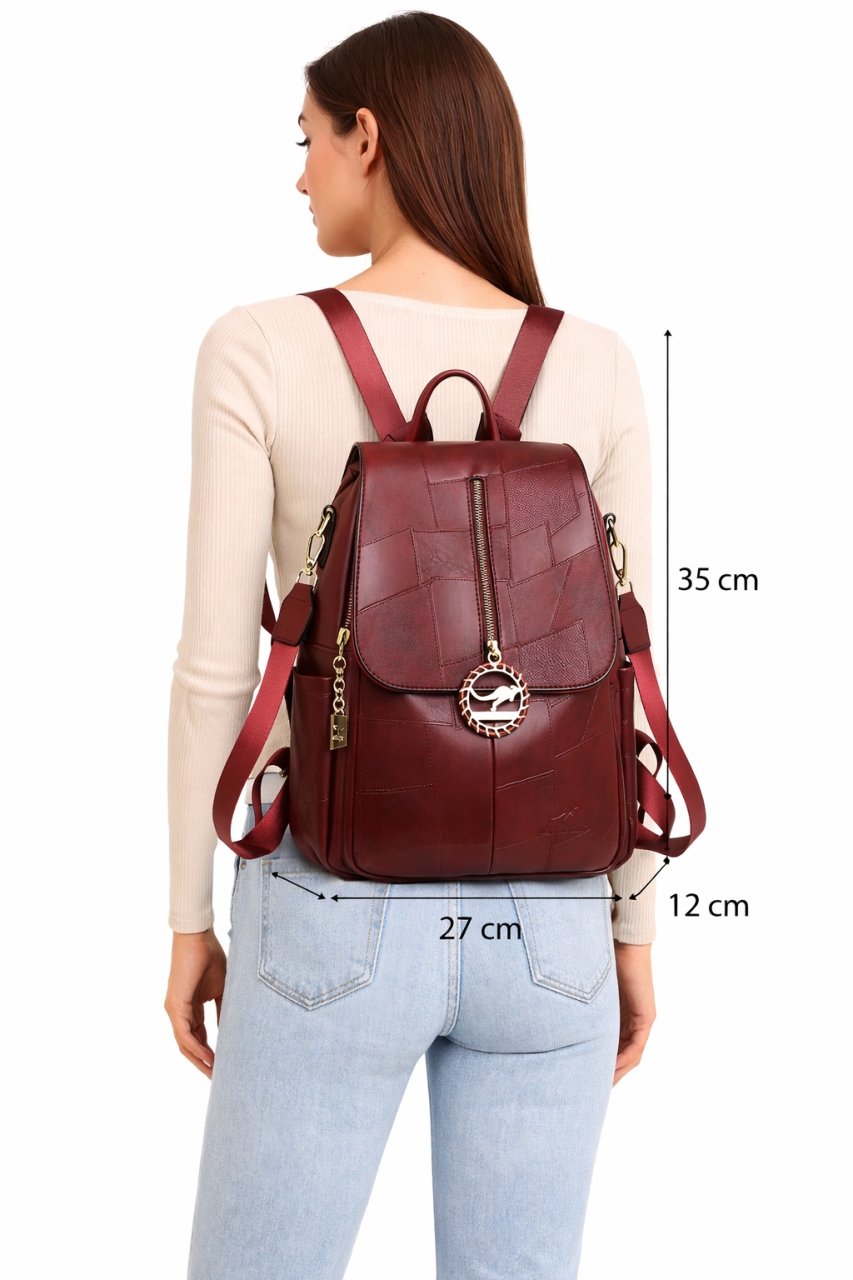 interior captusit; 1 compartiment principal; 1 buzunar interior cu fermoar; 2 buzunare interioare fara inchidere; 1 buzunar exterior fata cu fermoar; 1 buzunar exterior spate cu fermoar; 2 buzunare laterale fara inchidere; bretele ajustabile; 1 bareta detasabila; material: piele ecologica; sistem inchidere: fermoar; dimensiuni: 27 x 12 x 35 cm; greutate: 0.9 kg; accesorii de culoare aurie. Important: Nuanta produsului poate varia usor, datorita luminozitatii monitorului, datorita varietatilor instrumentelor de masura, pot exista usoare erori de cm!