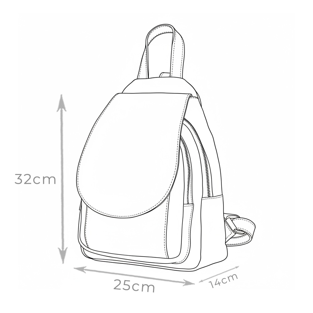 Rucsacul din piele naturala Dante albastru, realizat din piele naturala de inalta calitate, cu textură granulata, este accesoriul perfect pentru femeia moderna care pune pret pe stil si confort. Rucsacul prezinta un capac rotunjit cu închidere magnetica, oferind acces rapid la compartimentul principal spatios. Dispune de buzunare laterale cu fermoar pentru organizarea eficienta a obiectelor personale, precum telefon, chei sau portofel. Bretele ajustabile asigură confort maxim la purtare, iar mânerul superior permite și transportul ca geantă de mână. MATERIAL: piele naturalaDIMENSIUNI (inaltime x latime x adancime): 32 x 25 x 14cmCOMPARTIMENTE: doua compartimenteBUZUNARE: buzunar interior cu fermoar; buzunar interior fara fermoar; buzunar secret in partea din spateSISTEM DE PRINDERE: maner + bretele de umar reglabile