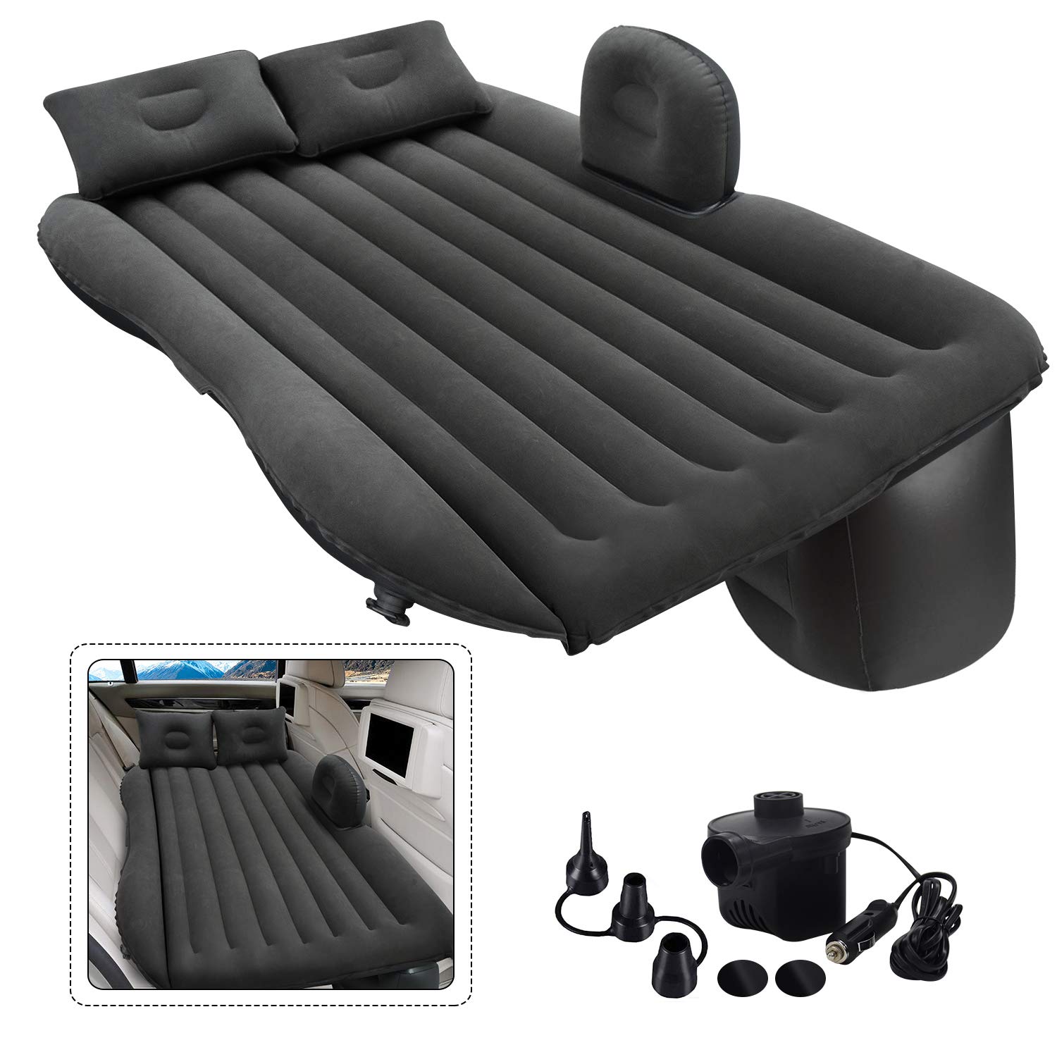 Saltea gonflabila Couch Air pentru masina, 86 x 40 x 135 cm, include pompa auto Perfecta pentru a va odihni confortabil pe scaunul din spate al masinii, dupa o calatorie lunga, o noapte de petrecere, festivaluri, etc. Aceasta saltea gonflabila, versatila si practica poate fi folosita si in afara masinii, pentru a va intinde pe ea in gradina etc. fabricata din PVC usor de instalat potrivita pentru orice masina suprafata catifelata 2 perne (aprox.: 38 x 25 cm) kit de reparare sac pentru pastrare dimensiuni aprox. pliata in sac: 30 x 25 x 12 cm dimensiuni aprox.: 86 x 40 x 135 cm pompa automata cu adaptor pentru masina si duza dubla (12 V - 2 A) Continut pachet: 1 x Husa 1 x Kit de reparare 1 x Saltea 2 x Perna gonflabila 1 x Pompa auto Culori disponibile: negru, bleumarin, gri.