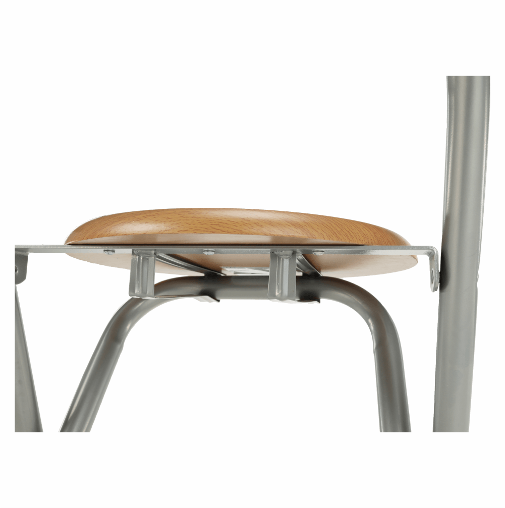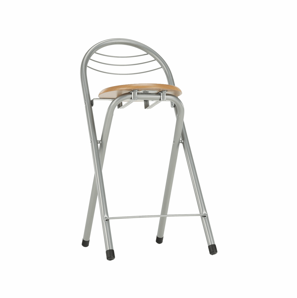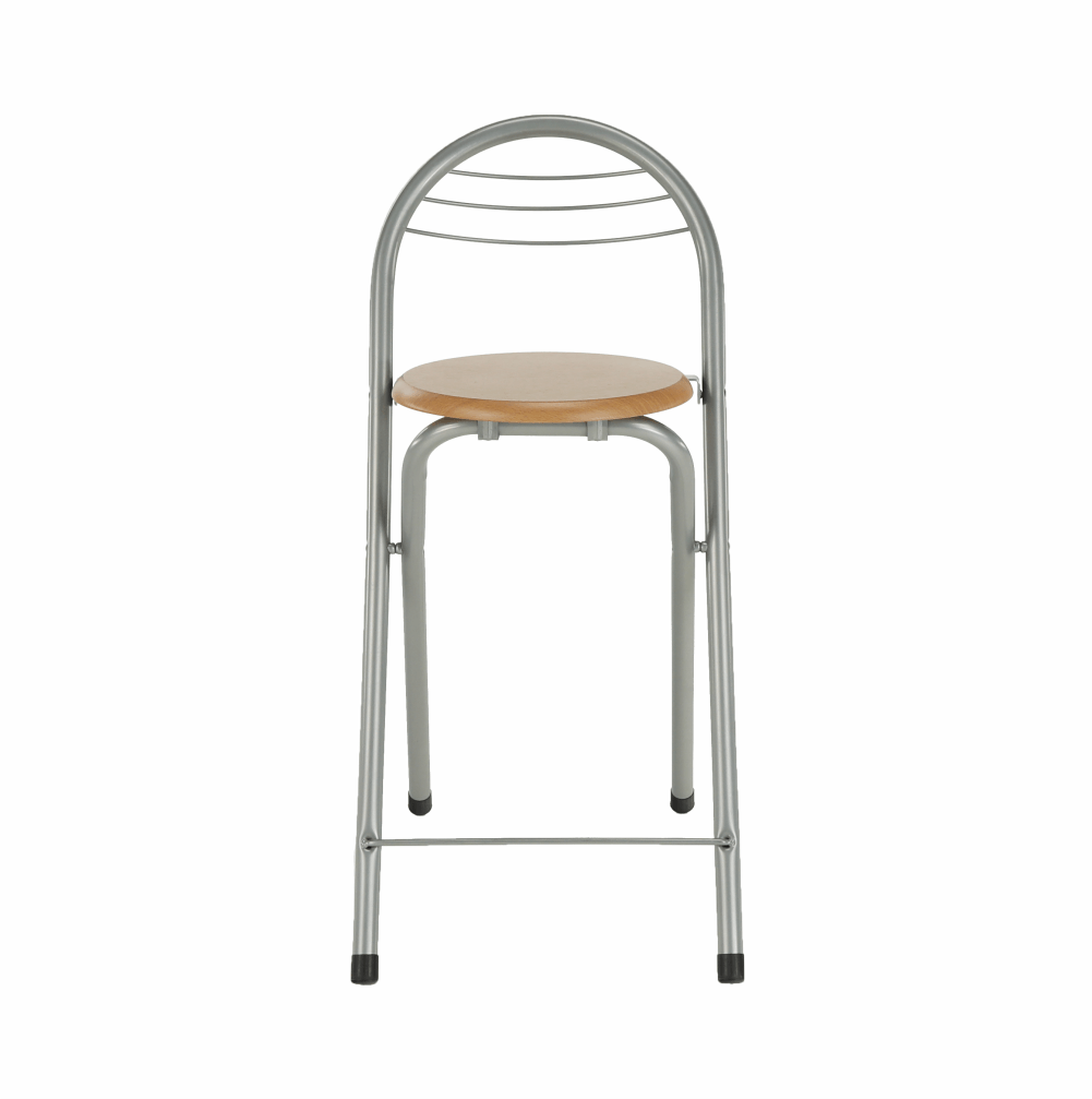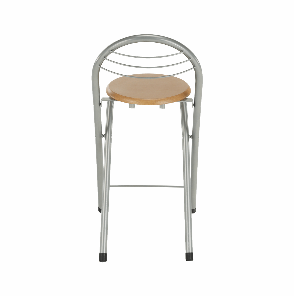 Scaun de bar, metal cu strat de suprafata de aluminiu in combinatie cu lemn,Nuanta lemnului fag, diametrul 39 cm, inaltimea sezutului: 60 cm.Greutate maxima sustinuta de scaun: 80 kg