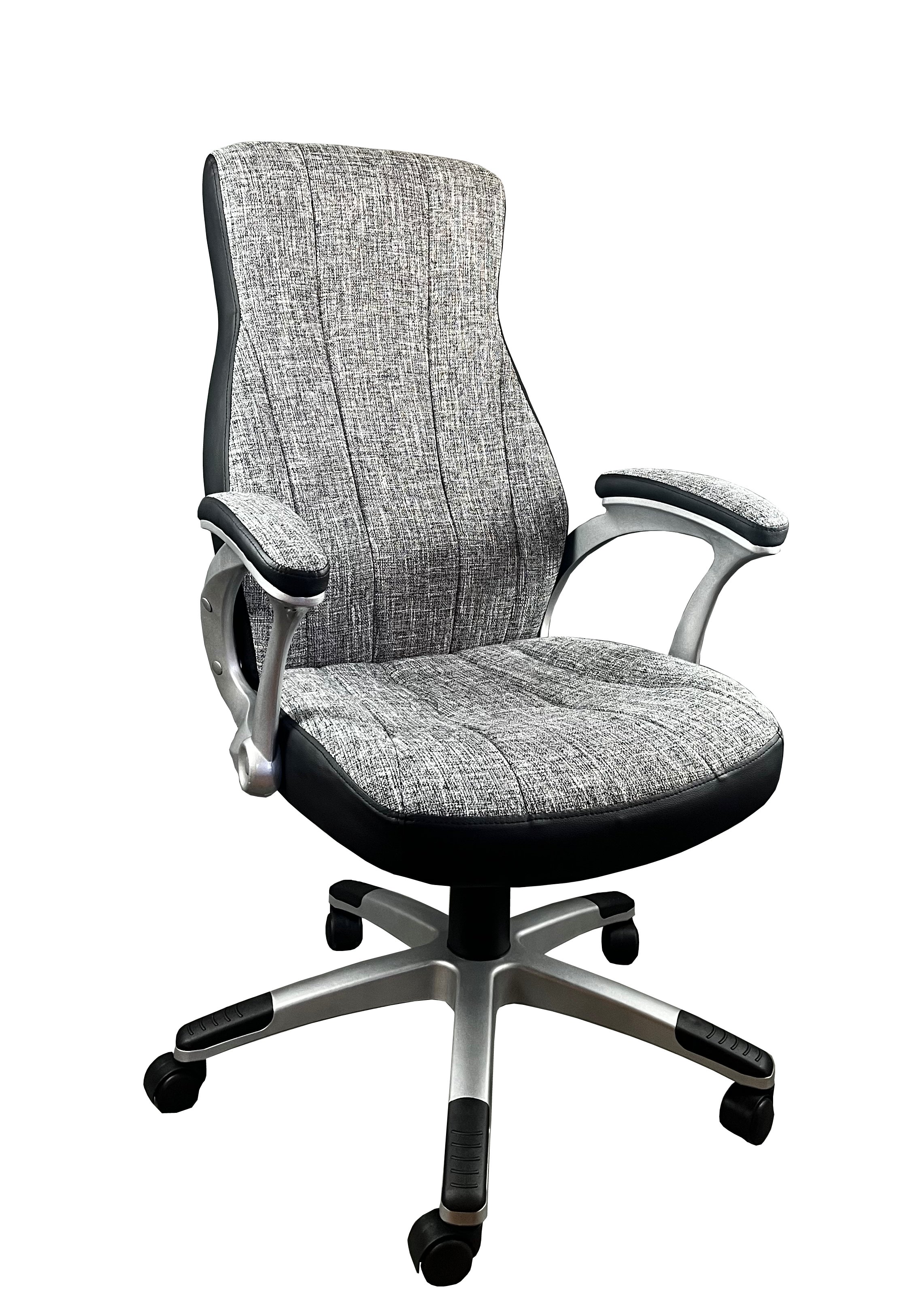 Scaunul de birou US64 este perfect pentru birourile moderne, realizat din material textil, este rotativ si rezistent. Este un scaun clasic, capitonat cu perne moi ce urmaresc linia corpului. Potrivit persoanelor practice, acest scaun directorial poate fi alegerea potrivita atat pentru acasa cat si pentru birou. Scaunul directorial US64 are sezutul si spatarul tapitat cu material textil, tip stofa si piele ecologica. Baza, tip stea este fabricata din nylon vopsit in camp electrostatic, cu 5 roti din polipropilena, ce permit o mobilitate usoara pe orice suprafata. Manerele, tot din polipropilena, deasemenea tapitate, ofera o pozitie confortabila a mainilor si a trupului in timpul utilizarii. Scaunul este prevazut cu cilindru pneumatic de ridicare/coborare si rotire 360 de grade si mecanism tilt care permite balansul.Dimensiunile totale ale scaunului sunt 63 cm latime, 70 cm adancime si 121 cm inaltime. Inaltimea scaunului poate fi ajustata intre 113 si 121 cm. Acest scaun directorial a fost proiectat si testat pentru a sustine o greutatea de 120 kg. Intretinere: a se curata cu o carpa usor umezita intr-o solutie de apa calduta cu sapun (50% apa, 50% sapun PH neutru), apoi stergeti cu o carpa uscata.Produsul se livreaza demontat si este insotit de instructiuni si accesorii pentru asamblare.