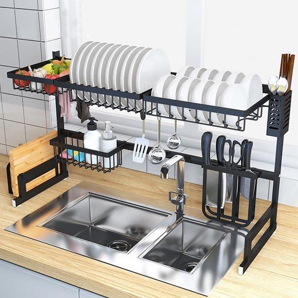 Scurgator pentru vase deasupra chiuvetei Suport multifunctional pentru uscarea vaselor, poate organiza toate ustensilele, cutitele, furculitele, farfuriile, buretii de spalat vase, capace, fructe, legume. Toate articolele din bucatarie intr-un singur loc. Proiectare peste chiuveta: Va permite sa uscati vasele chiar deasupra chiuvetei, eliberand blaturile si mentinand bucataria ordonata. Fabricat din otel de calitate premium, 100% antirugina. Foarte dur, nu se va deforma. Dispune de 4 ventuze la baza, pentru a se aranja bine pe blat, pentru a nu strange umezeala sub el si pentru stabilitate. Multi sufera de lipsa spatiului, o astfel de scurgator vase poate fi o solutie. Majoritatea gospodienlor s-au luptat deja cu gramezi de vase si farfurii nespalate. Un scurgator practic poate fi un mare ajutor, ustensilele de bucatarie se usuca mai repede si nici apa picuratoare nu curge pe blatul bucatariei. Totul are un loc si este deosebit de practic, deaorece nu necesita gaurire. Are o sectiune separata pentru farfurii, oale, ustensile, pahare, tacamuri, chiar si pentru burete si detergent pentru spalat vase. Datorita picioarelor cu ventuze, nu se deplaseaza. Dimensiuni produs: 65 x 31.5 x 52 cm Greutate produs: 4 kg