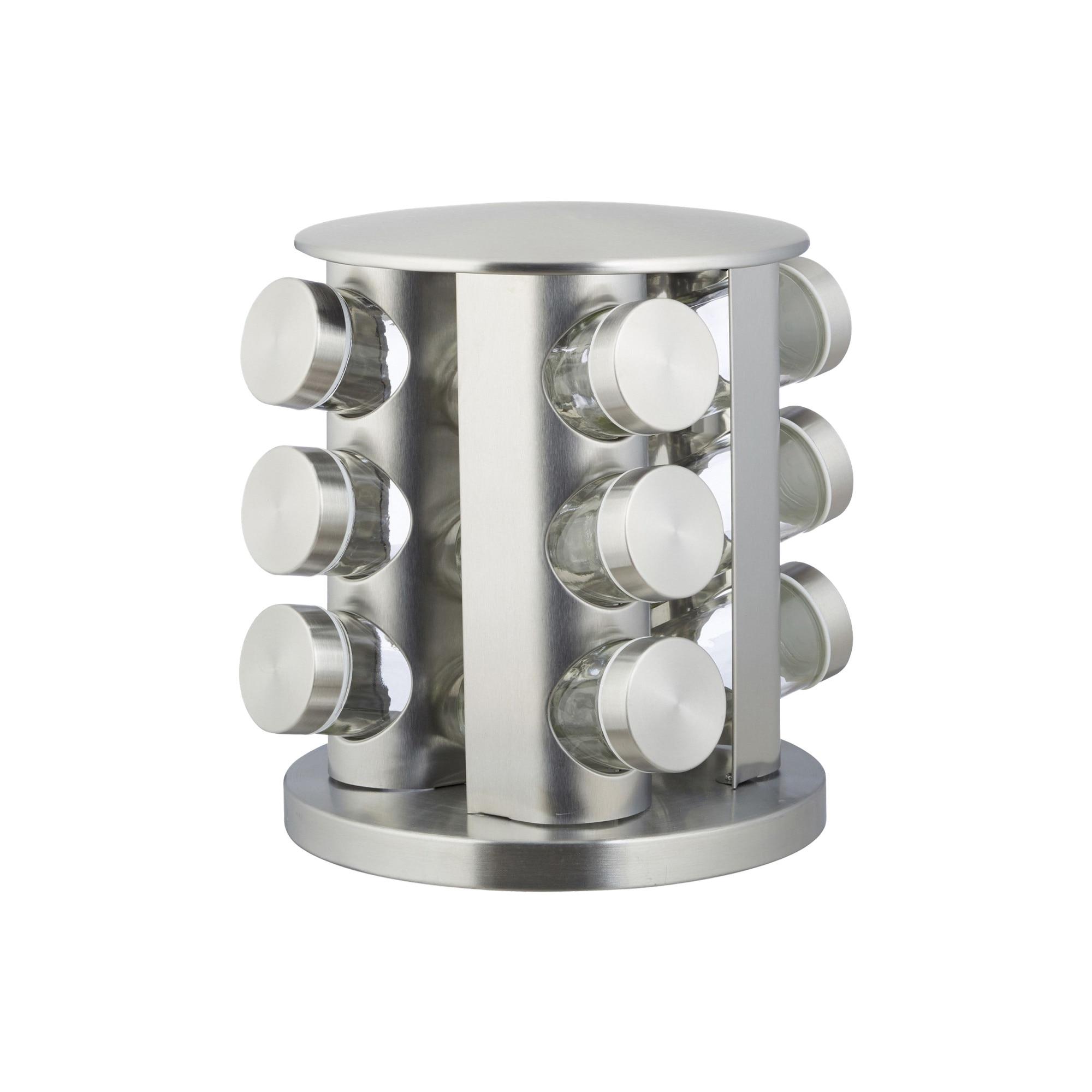 Set 12 recipiente condimente cu suport rotativ, Argintiu