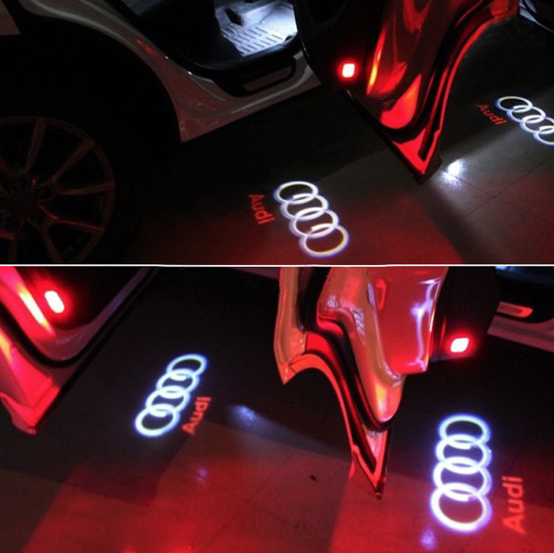 Set 2 holograme LED cu logo AUDI pentru portiere Voltaj: 12 V Putere: 5W Temperatura de functionare: -40 -65 grade Celsius Instalare: Nu necesita gauri Plug and Play Set de holograme LED pentru portiere functioneaza pe baza curent, usile trebuie sa aibe sistem electric din fabrica, acestea inlocuind becul halogen cu un bec dedicat cu holograma personalizata. Aceste holograme vor proiecta logo-ul producatorului auto pe asfalt. Pachetul contine: 2 x Proiectoare LED holograma logo