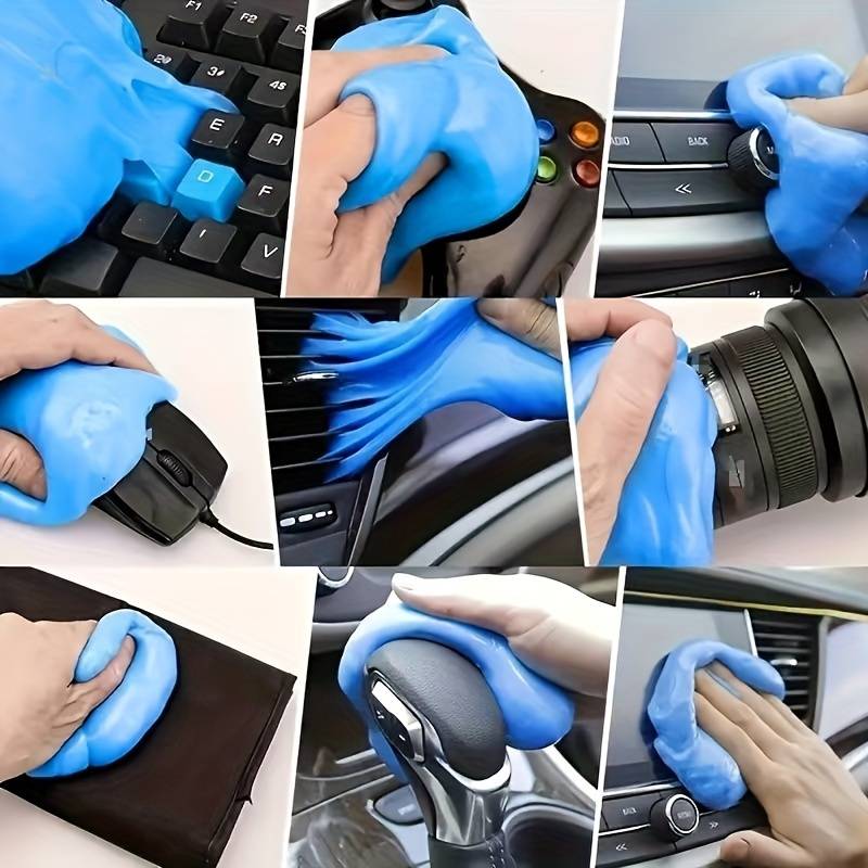 Gel de curatare pentru spatii greu accesibile Slime gel pentru curatare spatii greu accesibile, grille de aerisire, tastaturi Curatare detaliata a autoturismului. Gelul de curatare este perfect pentru curatarea colturilor, a suporturilor de pahare, a spatiilor de depozitare, locuri in care ajungi cu greu cu un servetel sau o laveta. Gelul poate curata usor grilele de ventilatie.din interiorul autoturismului, coloana de directie, bordul, torpedoul si spatiile inguste din portiere. Usor de folosit. Este necesar doar sa apasati gelul si praful dispare. Pentru curatarea spatiilor mici este necesar sa impingeti gelul in acele spatii si trageti inapoi. Puteti folosi acest gel de curatare pe tastaturi, laptop-uri, televizoare. Reutilizabil. Poate fi folosit de multe ori, pana culoarea acestui gel devine inchisa. Dupa utilizare puneti gelul inapoi in cutia cu care este livrat. Acesta trebuie pastrat intr-un loc racoros. Sigur si prietenos cu mediul. Gelul de curatare este produs din materiale biodegradabile cu miros placut. Este sigur pentru pielea ta si prietenos cu mediul inconjurator. Utilizare multipla. Gelul poate fi folosit si in casa, la birou, la computerele personale, laptopuri, imprimante, televizoare, etc. Gramaj cutie: 160 grame Dimensiuni ambalaj; 5,6 cm x 7,4 cm