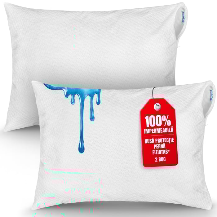 Set 2 x Husa de Perna Impermeabila FizioTab® Dimensiune 50x70 cm, Moale, Respirabila si Rezistenta Material Bambus/Poliester, Inchidere cu Fermoar, Alb Set 2x Husa de Perna Impermeabila Design Elegant - Calitate Garantata Dimensiune: 50x70 cm Husele de perna FizioTab® sunt alegerea ideala pentru familiile cu copii mici, pentru persoanele cu nevoi speciale sau pentru oricine doreste sa-si protejeze pernele si sa se bucure de un somn confortabil, fara griji. Conceputa special pentru a oferi protectie ridicata pernelor, asigurand un confort sporit in timpul somnului. Realizate din materiale premium, cu vascoza din bambus, moale, respirabila si hipoalergenica. Husele FizioTab® protejeaza eficient pernele impotriva lichidelor, petelor si umezelii, prelungindu-le durata de viata si pastrandu-le mereu curate si proaspete. Datorita stratului impermeabil din TPU husele impiedica patrunderea lichidelor, dar in acelasi timp permit aerisirea pernei, mentinand senzatia de prospetime si confort termic pe toata durata somnului. Textura moale asigura o atingere delicata, fara zgomot neplacut la miscare, astfel incat somnul sa ramana odihnitor si linistit. Designul special conceput cu fermoar ascuns, asigura o inchidere fixa si sigura. Instructiuni de intretinere: Usor de intretinut, husele pot fi spalate manual sau la masina de spalat la maxim 40 grade, centrifugare blanda. A se folosi detergent special pentru tesaturi albe Nu recomandam sa fie uscata in uscatorul de rufe, pentru a evita deteriorarea ei in timp, Recomandam sa fie uscata in aer liber, dar nu in lumina directa a soarelui A nu se calca pentru a nu deteriora bariera impermeabila din interiorul pernei