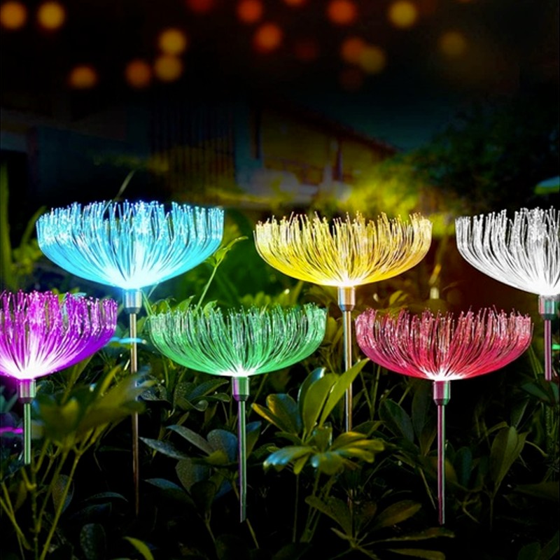 Set 2 x Lampa solara fibra optica RGB, model floare Amenajeaza-ti curtea sau gradina intr-un mod cu adevarat deosebit utilizand aceste decoratiuni solare. Acum poti sa iti luminezi curtea, zona cu flori si cararea. Lampile cu fibra optica lumineaza in intuneric fara a fi nevoie de o sursa de energie, alimentandu-se pe timpul zilei de la lumina solara. Felul in care aranjezi lampile tine doar de preferintele tale si iti ofera posibilitatea sa dai frau liber imaginatiei. Lampile solare au lumina RGB, circa 7 culori ce se schimba. Dotate cu senzor de lumina. Porniti intrerupatorul si puneti lampile intr-o locatie in care pot fi expuse la lumina soarelui in timpul zilei, acestea se vor aprinde automat noaptea si se vor stinge in timpul zilei. panou solar 2V 120mA baterie NiMH 600mAh tensiune de lucru 3.2v 50mA material: fibra optica rezistent la coroziune, transmisie de lumina, IP65 rezistent la apa 70 cm inaltime timp incarcare: 8-10 ore lumina RGB, 7 LED timp functionare: 7-8 ore