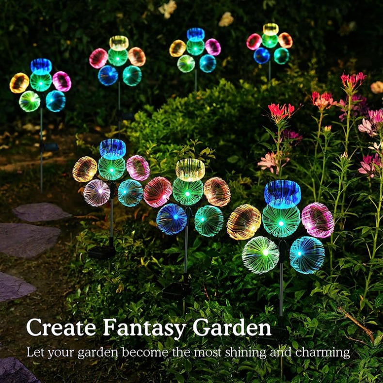 Set 2 x Lampa solara LED RGB, Mini Jelly Amenajeaza-ti curtea sau gradina intr-un mod cu adevarat deosebit utilizand aceste decoratiuni solare. Acum poti sa iti luminezi curtea, zona cu flori si cararea. Lampile cu fibra optica lumineaza in intuneric fara a fi nevoie de o sursa de energie, alimentandu-se pe timpul zilei de la lumina solara. Felul in care aranjezi lampile tine doar de preferintele tale si iti ofera posibilitatea sa dai frau liber imaginatiei. Lampile solare au lumina RGB, circa 7 culori ce se schimba. Dotate cu senzor de lumina. Porniti intrerupatorul si puneti lampile intr-o locatie in care pot fi expuse la lumina soarelui in timpul zilei, acestea se vor aprinde automat noaptea si se vor stinge in timpul zilei. 6 bulbi jellyfish panou solar 2V 180mA baterie NiMH 600mAh tensiune de lucru 3.2v 50mA material: fibra optica rezistent la coroziune transmisie de lumina IP 65 - rezistent la apa 70 cm inaltime timp incarcare: 8-10 ore lumina RGB, 7 LED timp functionare: 7-8 ore