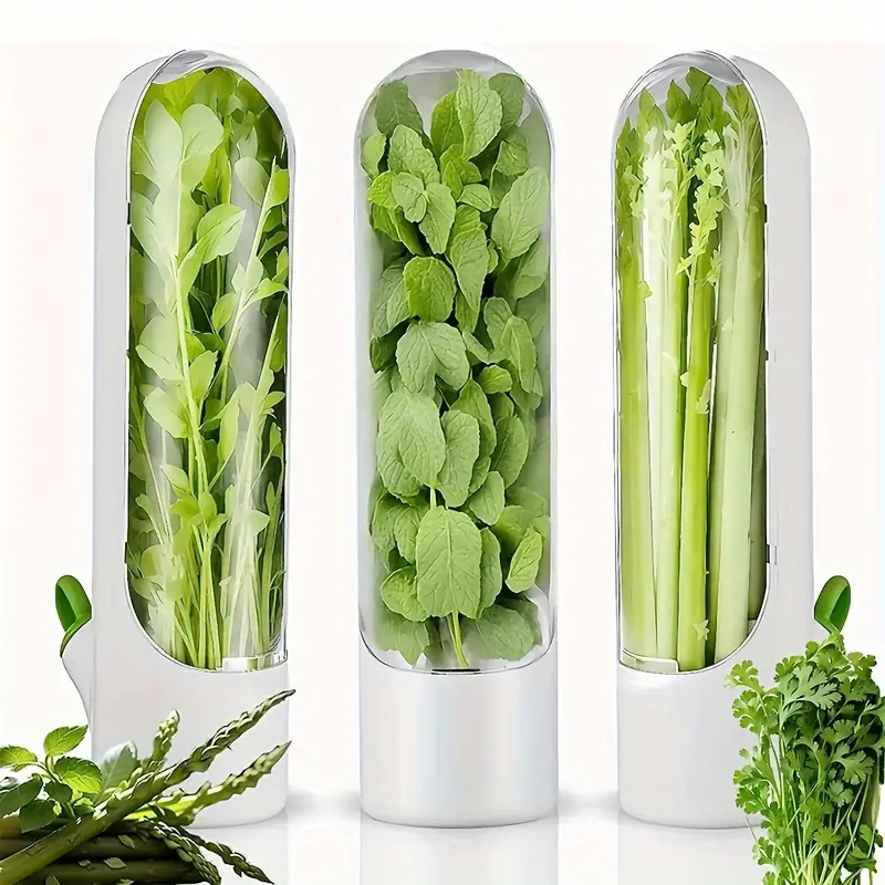 Set 2 x Recipient de prospetime Sunt foarte utile pentru legume si ierburi Descoperiti suportul de prospetime pentru legume si ierburi aromatice care nu numai ca merge in frigider, dar este de-a dreptul divin pentru ierburi! De aceea v-am adus acest recipient, care are un mod special de a pastra prospetimea mararului, mentei, patrunjelului si arpagicului. Astfel, acestea nu isi pierd niciodata verdele si le puteti depozita intr-un mod care va face intreaga bucatarie invidioasa pe abilitatile dvs. profesionale de organizare! Dimensiune si design perfecte pentru bucataria si frigiderul dumneavoastra. Material plastic de inalta calitate care garanteaza durabilitatea. Design ergonomic pentru o utilizare usoara. Facil de curatat si spalat. Pastreaza ierburile proaspete si gustoase pentru mai mult timp. Pastrarea ierburilor proaspete nu a fost niciodata atat de usoara si eleganta! Suportul de prospetime pentru legume si ierburi va va usura de la inceput activitatile zilnice din bucatarie si va contribui la succesul preparatelor dumneavoastra creative. Nu mai trebuie sa renuntati la patrunjelul cu gust curat sau la menta parfumata doar pentru ca au putrezit rapid in frigider! Acest produs la moda garanteaza ca ierburile tale vor ramane proaspete si suculente toata saptamana! Nu ezitati sa achizitionati unul si sa experimentati un adevarat sentiment de prospetime in bucataria dumneavoastra!