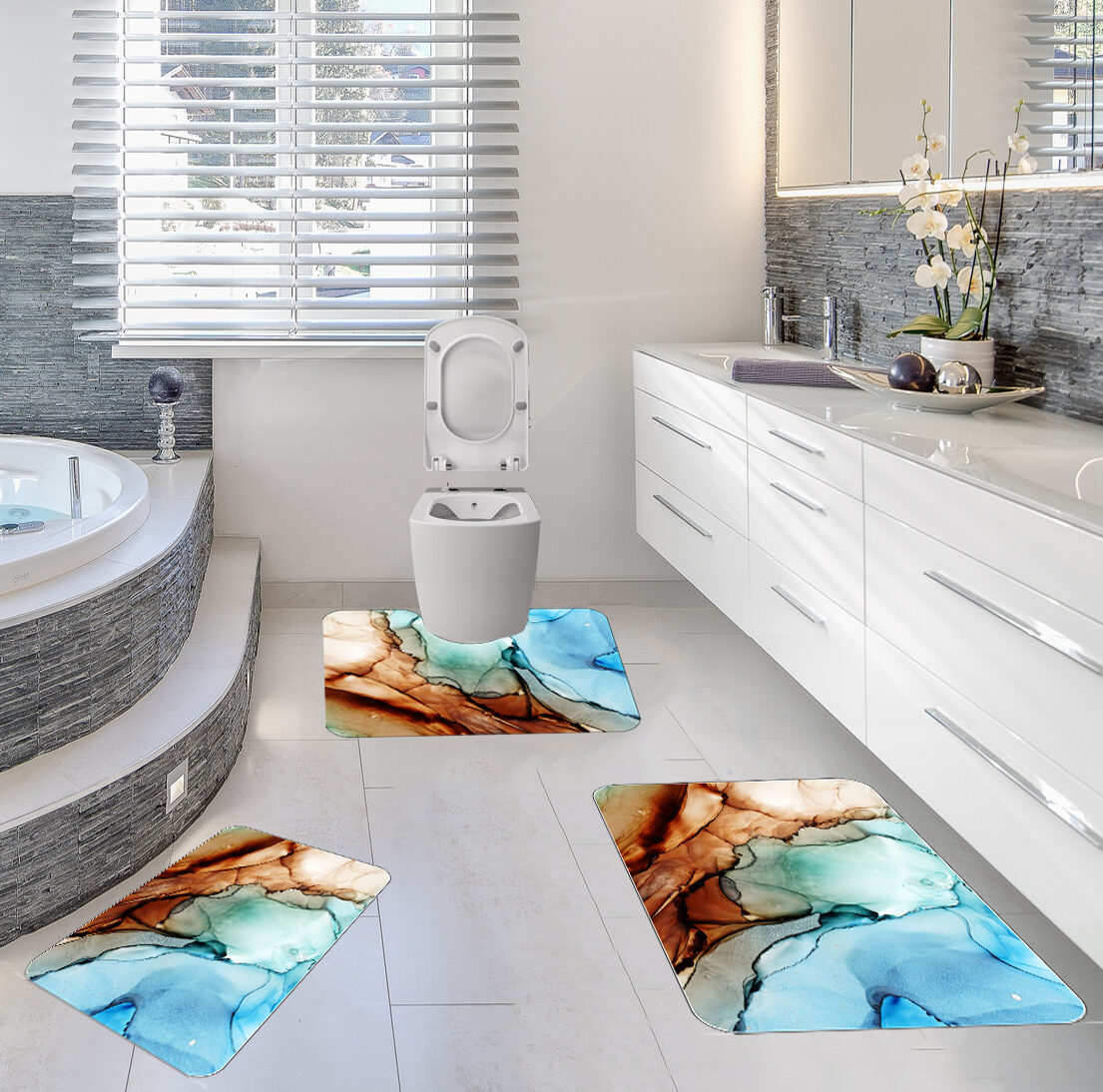 Set 3 covorase antiderapante de baie, Blue Marble Setul de covoare pentru baie este antistatic, absorbant si usor de intretinut. Cu suport anti-alunecare, asigura o iesire fara riscuri din cada de baie. Covorasul pentru suportul de la chiuveta va ofera caldura si confort. Pachetul include: 1 covoras pentru baie, 100 x 60 cm 1 covoras pentru suportul de la chiuveta, 50 x 60 cm 1 covoras pentru WC, 50 x 60 cm Intretinere produs: Poate fi curat foarte usor cu aspiratorul Poate fi curatat prin stergere cu spuma unui amestec din apa cu detergent Poate fi spalat chimic la masini speciale insa fara a fi folositi inalbitori Dupa curatare covorul se lasa la uscat, dar nu se expune in lumina directa a soarelui Nu se foloseste fierul de calcat