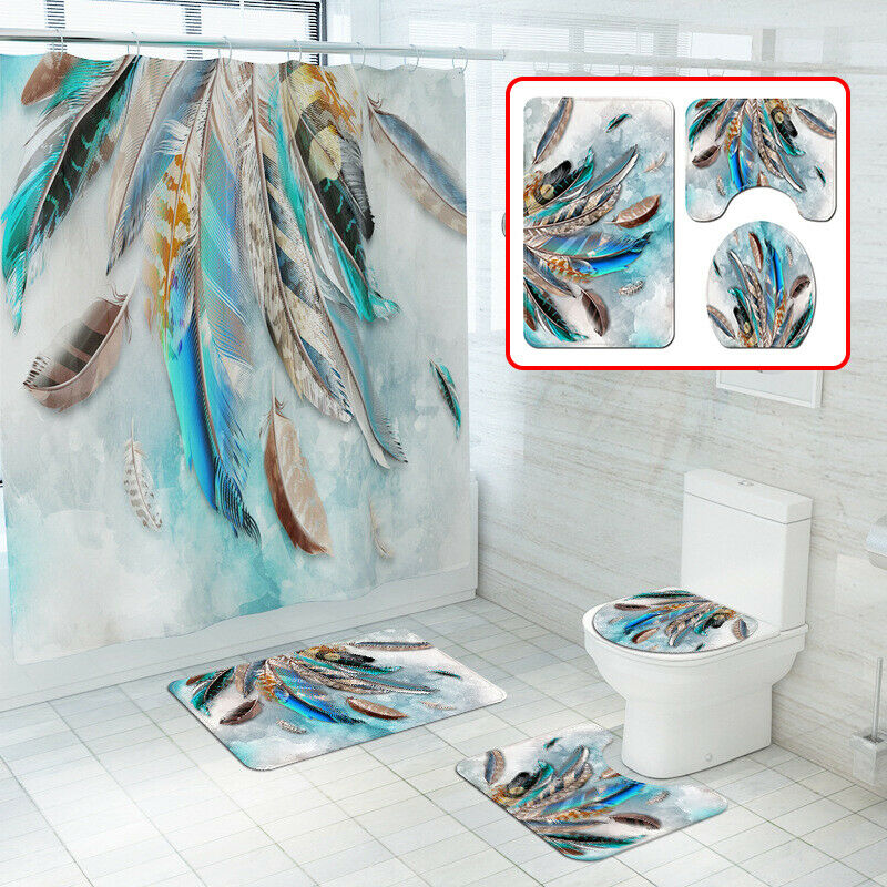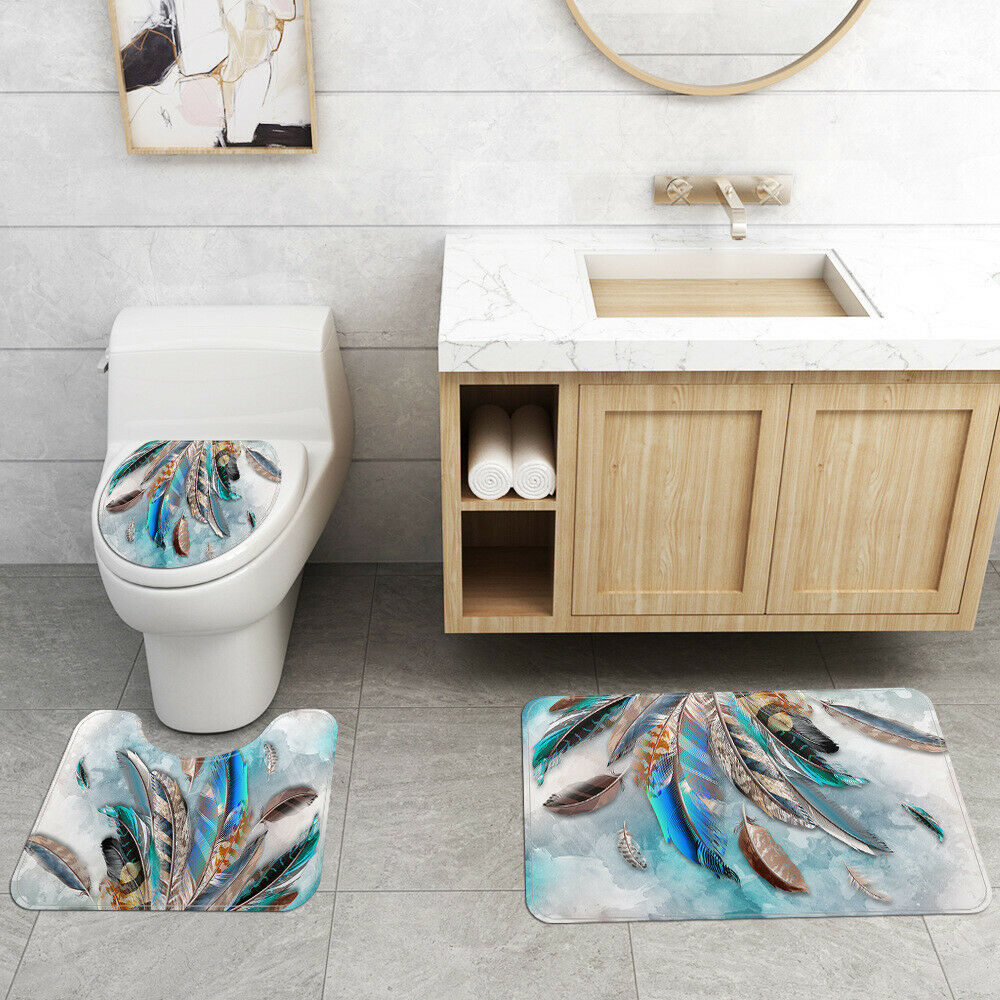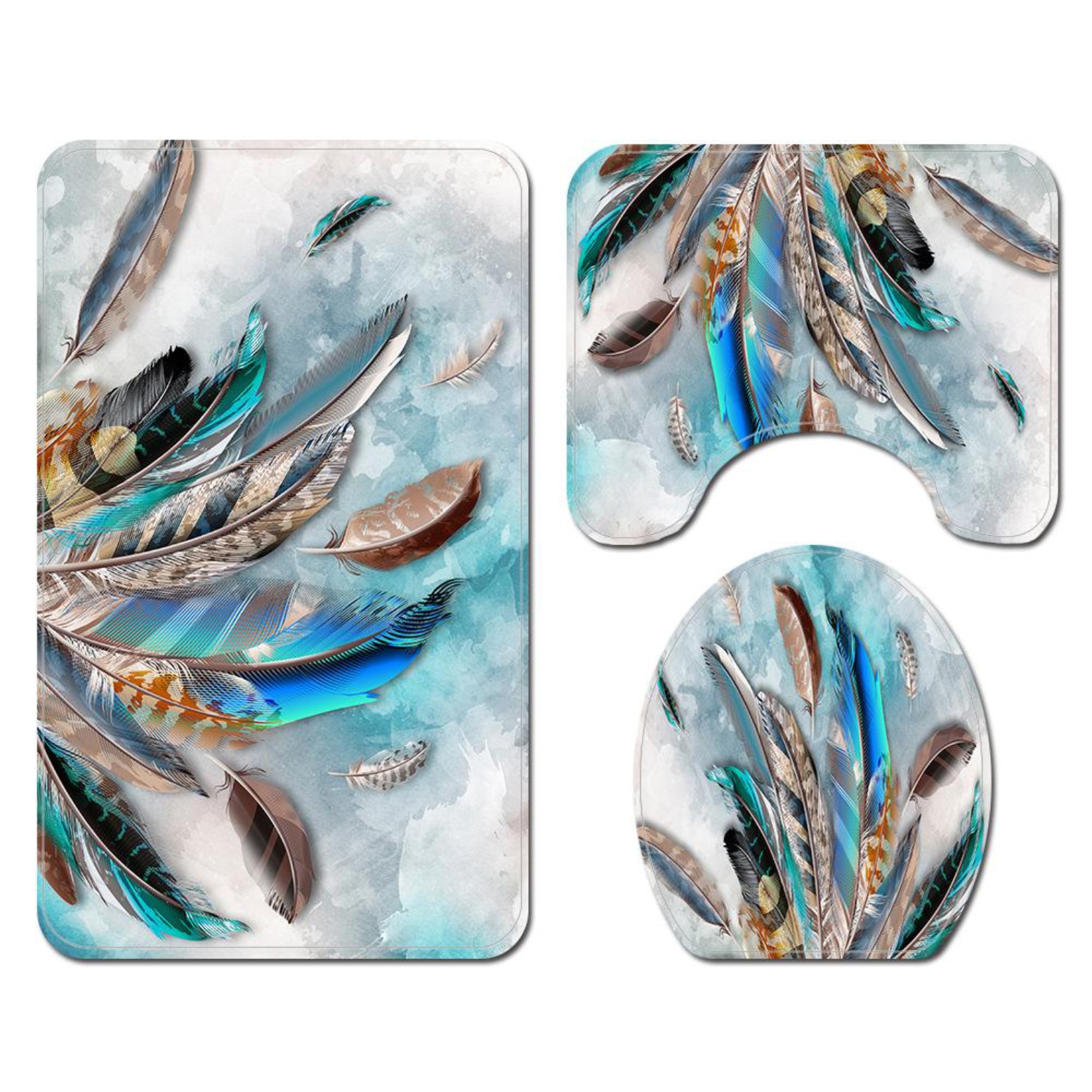 Set 3 Covorase de baie FizioTab Covorase antiderapante baie, Model pene Material: flannel si polyester Covorase moi si confortabile Absorb usor apa si praful Suprafata Antialunecare Print de calitate, model pene, in culori vii si vesele Grosime: 0,8 cm ± 5% Setul contine: 1 x covoras vana (750 X 450mm) 1 x covoras contur toaleta (440 X 450mm) 1 x covoras protectie capac de toaleta (450 X 380mm) Usor de curatat: Spalare manuala: inmuiati in apa 10 minute apoi adaugati detergentul si frecati usor cu o perie. Spalare in masina: a se spala in apa rece. Nu spalati impreuna cu alte haine! Nu folositi inalbitori si nu curatati chimic. Calcati daca este necesar, la temperatura joasa. Perdeaua de dus NU face parte din set!