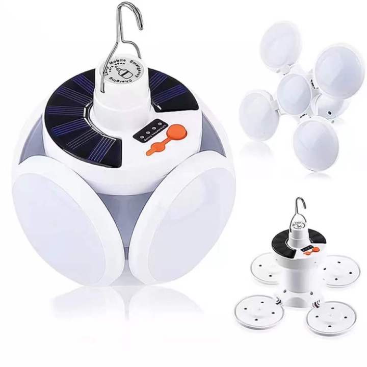 Set 3 x Bec cu panou solar si acumulator Bec solar cu 4 brate rabatabile si 5 trepte de iluminat Bec cu panou solar si acumulator, 4 brate rabatabile si 5 trepte de iluminat vine cu un cu design simplu si elegant, durabil, luminos, multifunctional, practic, oferindu-va o experienta de iluminare diferita. P anoul solar se incarca pentru a asigura un flux continuu de electricitate fara a plati facturile de energie electrica pe tot parcursul anului. Cu ecran translucid de inalta calitate, emisie uniforma de lumina, emisie de lumina omnidirectionala la 360 ° Specificatii tehnice: Lampa solara pliabila Material: material ABS Comutator: Buton comutator Panou solar din siliciu policristalin de 5,5 V Baterie: baterie litiu 18650 Sursa de lumina: 45 LED Chip Lamp Beads Domeniu de iluminare: 60 cm2 zona Lumina: lumina alba 4 brate rabatabile Incarcare: USB / energie solara Moduri de iluminat total 5 – Moduri STROBO/SOS 2 Intrerupator: Lumina puternica, lumina medie, lumina slaba, Blast, SOS Mod iluminat: Mediu ~ Mic ~ Puternic ~ Strobo ~ SOS. Evaluare impermeabila: IP65 Timpul de incarcare solar: 6~12 (h) Timp incarcare prin USB incarcator : de 6 (h) Timp de lucru 6~8 (h) Dimensiuni brate deschise: 14cm x 24cm Dimensiuni brate inchise : 14cm x 11,5cm. Alimentare: panou solar incorporat