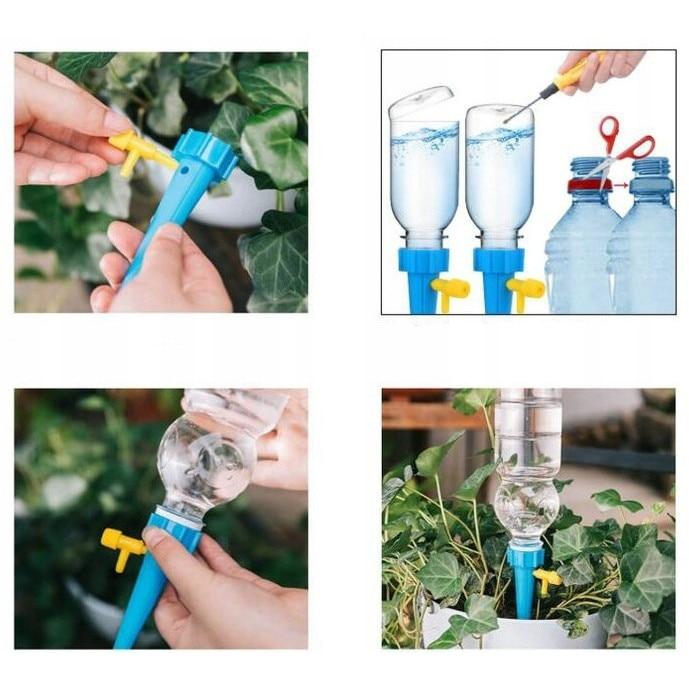 Set 30 picuratoare pentru ghiveci Set picuratoare cu valva pentru irigare plante De acum inainte, nu mai trebuie sa va faceti griji daca plantele dvs sunt udate suficient. Acest sistem de irigare le uda automat prin picurare. Foarte practic de utilizat, iar plantele dvs. vor fi intotdeauna bine udate. 2 metode de picurare: picurare rapida sau lenta. Reglati rata de picurare pentru fiecare ghiveci separat. Tipul de picurare poate fi ajustat de la 0 la 60 picaturi / 1 secunda. Udarea poate dura intre 1-15 zile, in functie de dimensiunea sticlei pe care ati pus-o pe vasul de udat. Puteti regla cantitatea de apa pentru fiecare planta individual. Potrivit pentru plante mari si mici, rasaduri de legume, plante in ghivece, arbusti, flori. Sistemul de irigare este compatibil cu diverse sticle, mici sau mari (de exemplu, o sticla de apa, suc. Luati in considerare dimensiunea plantelor: o sticla de 2 litri este potrivita doar pentru plantele mai mari, plantele mai mici ar fi inundate cu o astfel de sticla. Usor de folosit - Sistemul de irigare este foarte usor de utilizat. Umpleti sticla cu apa si puneti-o in duza de irigare, determinati cantitatea de picurare si atasati sistemul in ghiveci. Faceti cateva gauri in partea superioara a sticlei pentru o doza mai eficienta de apa.
