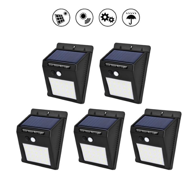 Set 5 x Lampa solara de perete cu senzor miscare 30 LED Lampa solara de perete dispune de 30 leduri SMD si ofera o putere de iluminare foarte mare. Este rezistenta la intemperii, deci nu trebuie sa va faceti grija daca este batuta de ploaie sau zapada. Lampa vine cu doi senzori principali: unul de miscare si unul de lumina. Senzorul de miscare detecteaza orice obiect in miscare pe o raza de 180 grade si 3-5 metri, iar senzorul de lumina permita lampii sa se opreasca automat dimineata si sa intre in modul de incarcare. Bateria se incarca in aproximativ 8 ore si confera o durata de iluminare de 2 zile in modul economic. Este perfecta pentru iluminat intrarea in garaj, poarta de intrare in curte, curtea interioara, iluminat decorativ, iluminat alei, iluminat in fara usii etc. Se monteaza in cateva secunde cu suruburile din pachet. senzor de miscare luminozitate: 320 lumeni putere panou solar: 5.5V, 0.55W timp de incarcare: 8 ore durata de viata LED: 5000 ore 6 ore de lucru: electricitate completa putere egala: < 0.05 mAh distanta de detectare: aproximativ 3-5 metri dimensiune produs: 125 mm * 90 mm * 50 mm greutate: 95 grame material: plastic Senzorul de miscare transforma automat lampa pornita / oprita. Utilizati bateria A +, capacitate mare, timp indelungat de asteptare. Detectare automata: detecteaza automat luminozitatea luminii si actiunea umana. Modul de conversie: Cand perceptia din jur este prea intunecata, intrati automat in modul de noapte (smart on / off); cand simte miscarea oamenilor, intra automat in modul luminos, atunci cand oamenii din intervalul de detectare intarzie 10 secunde si apoi din nou in modul luminos oprit. Chiar daca simtiti miscarea corpului intr-un loc unde luminozitatea este suficienta, lumina nu se va deschide. Materialul carcasei este de calitate superioara ABS + PC, praf si rezistent la apa IP65, perfect pentru utilizarea in exterior.