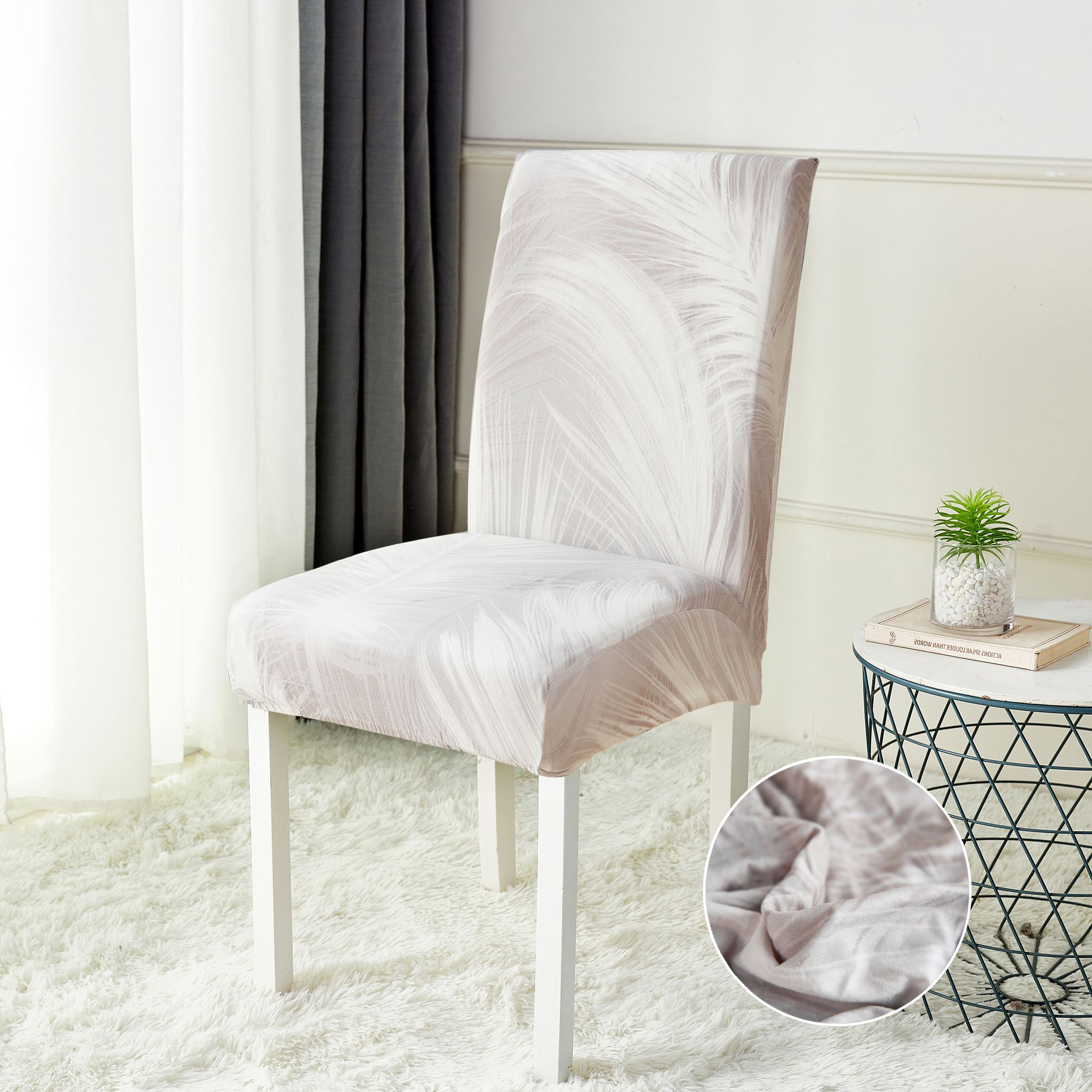 Set 6 huse universale pentru scaun, ELASTICE, Jojo Home, Gri, pene