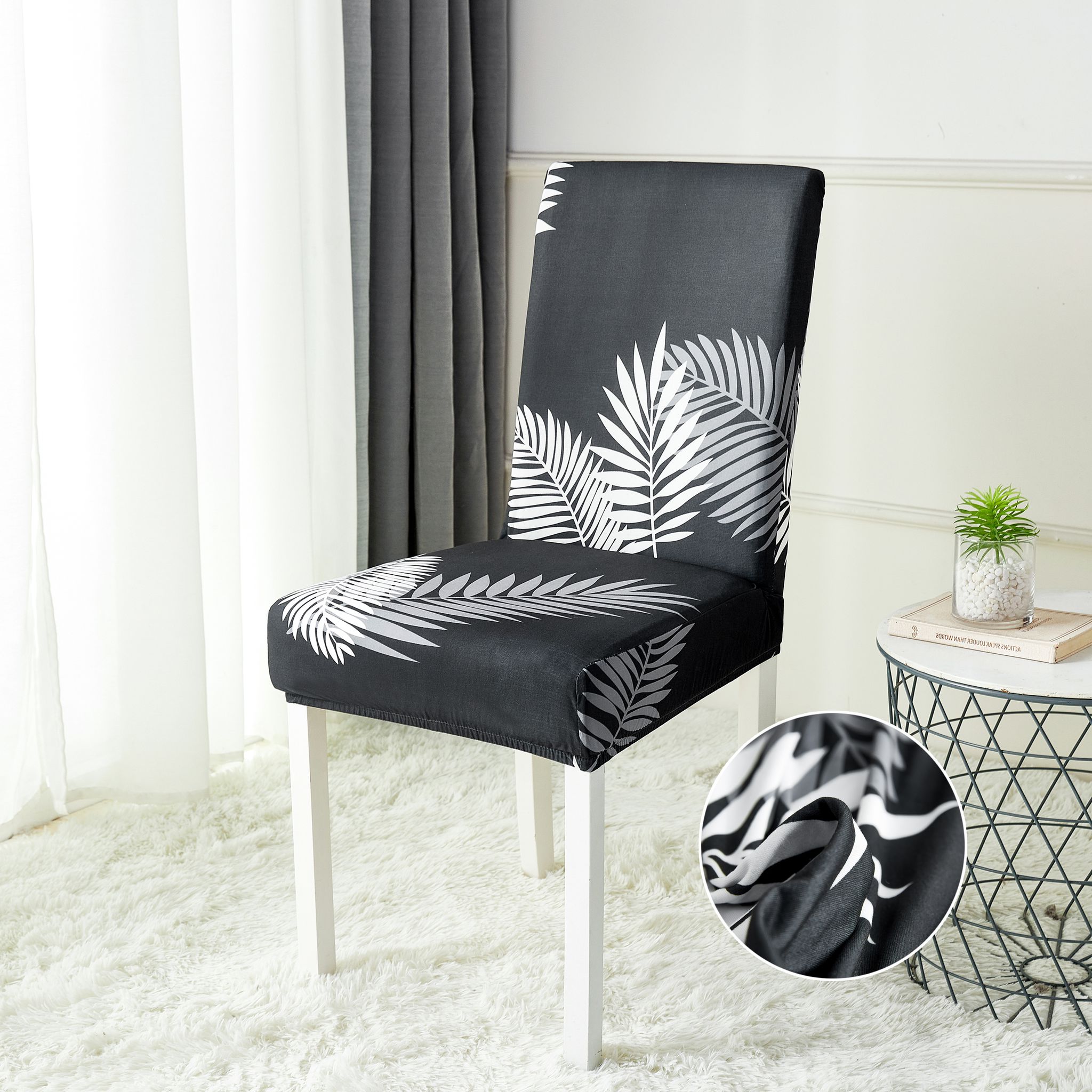 Set 6 huse universale pentru scaun, ELASTICE, Jojo Home, Negru, frunze