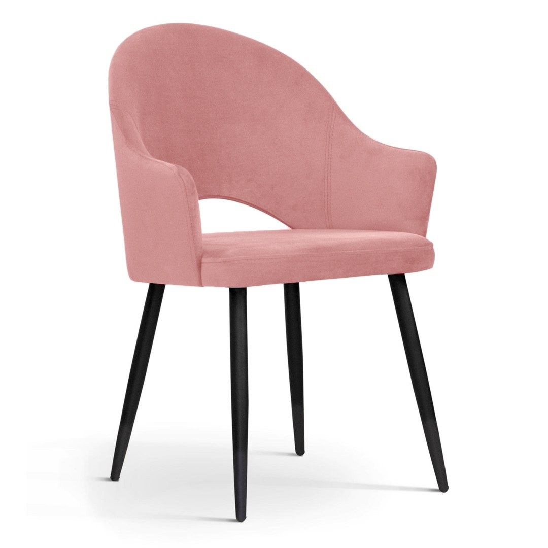 Scaunul Goda are un design modern cu un spătar și șezut confortabil. Șezutul îmbrăcat în catifea, oferă scaunului un aspect elegant, potrivit cu stilul glamour. Catifeaua folosită este de înaltă calitate care asigură o utilizare îndelungată și rezistență sporită. Scaunul Goda este potrivit pentru interioarele moderne atât ca utilitate cât și ca un element decorativ deosebit. Dimensiuni: Lățime: 56 cm Adâncime: 62 cm Adâncime șezut: 48 cm Înălțime de la sol la șezut: 48 cm Înălțime totală: 87 cm Detalii tehnice: Tapițeria este realizată din catifea roz - Bluvel 52 Produsul nu este montat. Instrucțiunile de montaj se găsesc în colet.