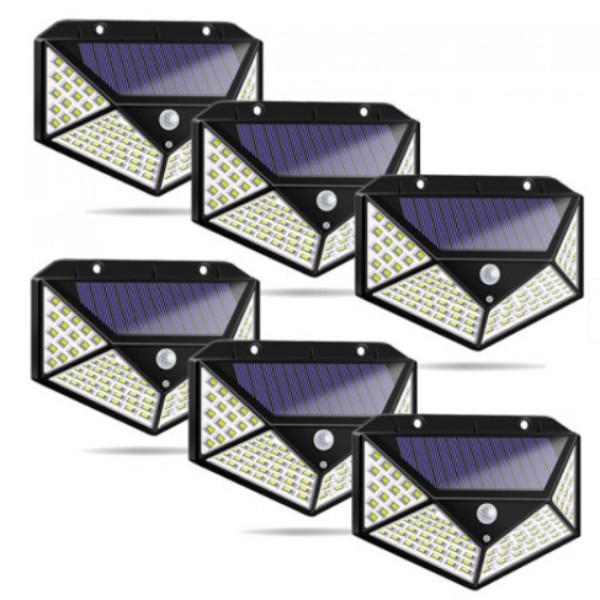Set 6 x Lampa 100 LED cu panou solar, senzor de miscare lampa solara functioneaza automat fara electricitate sau baterie suplimentara panouri solare din siliciu monocristalin, care transforma pana la 19% din lumina solara in energie electrica 100 LED ofera o iluminare excelenta de pana la 600 de lumeni 3 moduri de lucru, unghi 270 de grade, 4 suprafete de iluminare Modul senzor poate fi foarte practic: se aprinde noaptea cand este detectat un senzor de miscare si se opreste automat in 15 secunde dupa ce miscarea se opreste. Iluminare cu unghi larg de 270 °: lumini solare de perete cu un design integrat exclusiv pe 4 fete pentru unghi larg. Lampile solare au incorporat senzorul de miscare PIR, iar miscarea poate fi detectata in intervalul de detectare de 120 ° si lungimea senzorului de 5 metri. Este suficient de sensibil pentru a fi folosit ca lumina de securitate pentru casa, ofera confort si securitate noaptea. Specificatii: Unghiul senzor: 270 grade Impermeabilitate: IP65 Material carcasa: ABS Putere: 2 W Lumeni: 600LM Capacitate baterie: 1800 mAh Timp de incarcare: 8-12 ore - lumina directa a soarelui Timp de descarcare: mai mult de 10 ore
