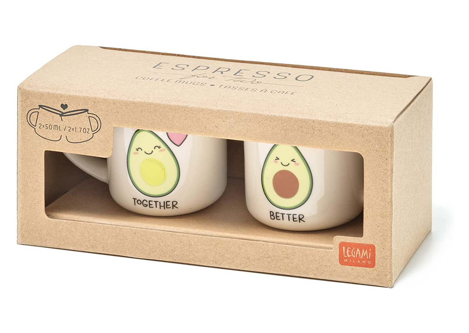 Set doua cani pentru espresso cu tema avocado, fabricate din portelan, capacitate 50ml.