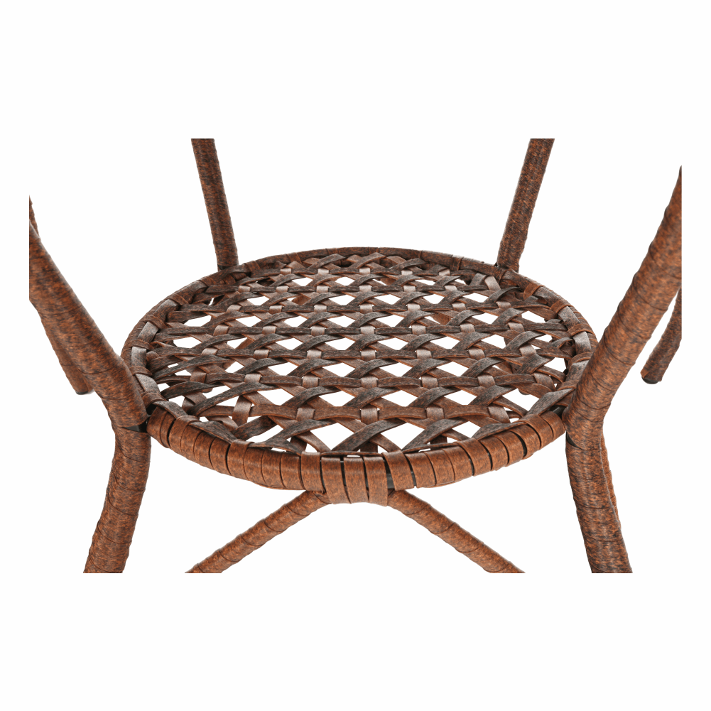 Material: ratan artificial/otel/sticla securizataCuloare: maroMasa (LxGxI): 60x60x52 cmScaun (LxGxI): 58x59x74 cmAdancimea sezutului: 45,5 cmInaltimea sezutului: 41cmGreutate scaun: 90 kgSet din 3 pieseO masaDoua scauneScaunul stivuibil