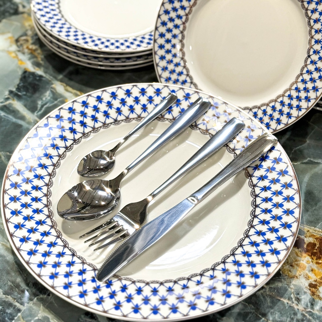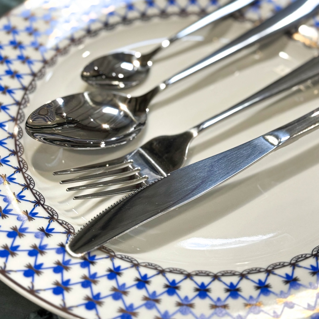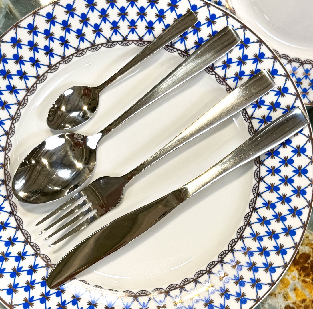 Set tacamuri din otel inoxidabil pentru 6 persoane – design modern, eleganta clasica     Transforma fiecare masa intr-o experienta deosebita cu acest set de tacamuri din otel inoxidabil de calitate superioara, inspirat de rafinamentul designului clasic si simplu. Perfecte atat pentru mesele zilnice, cat si pentru ocazii speciale, tacamurile imbina eleganta, durabilitatea si confortul in utilizare.      Design sofisticat si calitate premium     Fabricate din otel inoxidabil rezistent, t