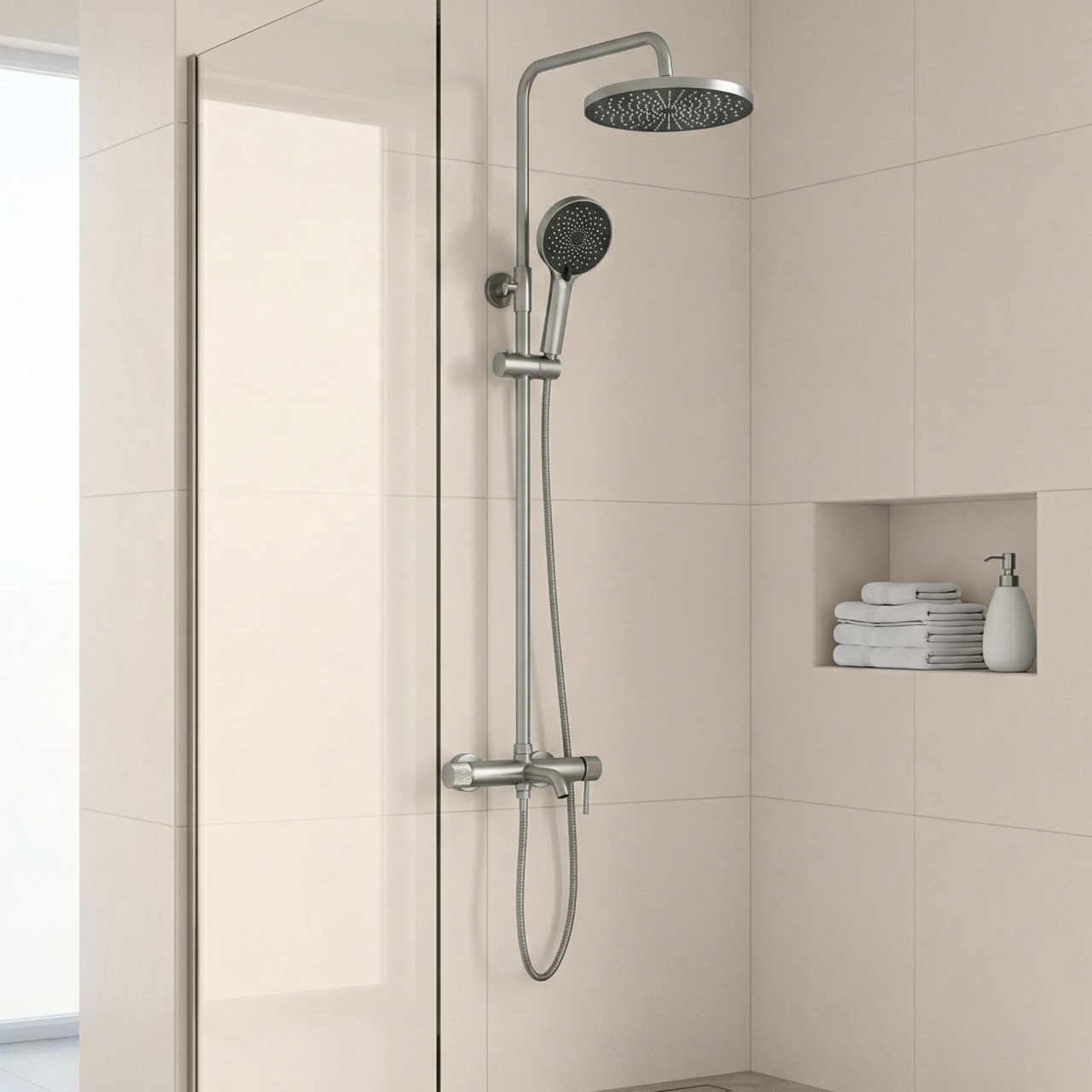 Setul de duș Rea Lungo Stripe cu finisaj Nichel Periat este o combinație de design modern și funcționalitate ridicată. Elementul caracteristic al seriei sunt detaliile subtile, canelate, care conferă armăturii un stil unic, de bijuterie. Datorită utilizării tehnologiei avansate de acoperire PVD, setul se caracterizează prin durabilitate și rezistență excepțională la deteriorare. Finisaj Nichel Periat – o suprafață mată elegantă care maschează eficient petele de apă și amprentele, facilitând curățarea zilnică. Structură Stripe – canelurile unice de pe elementele setului subliniază caracterul modern al băii și îmbunătățesc aderența. Tehnologia PVD – garantează durabilitatea culorii pe mai mulți ani și rezistență ridicată la zgârieturi și coroziune. Sistem de baie complet – setul include o pară de duș tip ploaie mare, un duș de mână ergonomic și o baterie aplicată, asigurând un confort deplin în utilizare. Materiale de înaltă clasă – corpul realizat din alamă asigură funcționarea fără probleme timp de mulți ani. Setul Rea Lungo Stripe este soluția ideală pentru persoanele care caută o armătură durabilă și de efect, care va deveni un accent decorativ puternic în orice baie modernă. Culoare: Oțel periat Material: Alamă, ABS Metodă de montaj: Suprafaţă Tip baterie: Monocomandă Reglare înălțime: Reglare înălțime Pipa cadă: Nu Reglare a presiunii: Reglare a presiunii Sistem Anti-Calc: Sistem Anti-Calc Tehnologia de acoperire: PVD Distanța dintre racorduri: 150 Garantie: 24 luni