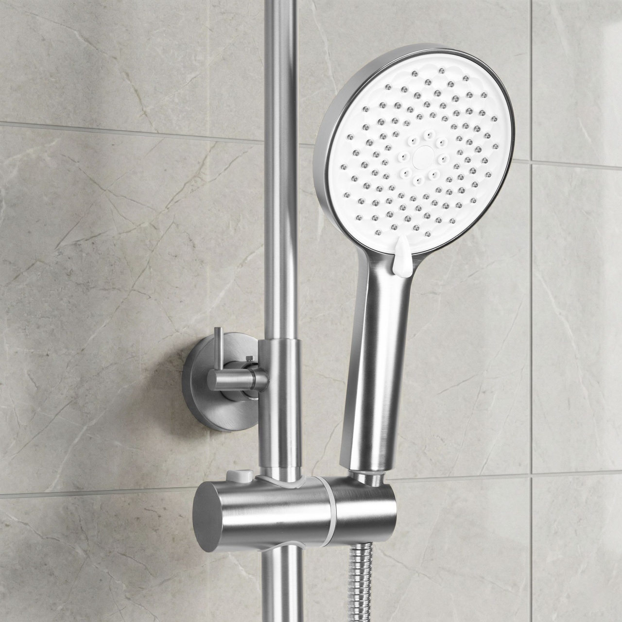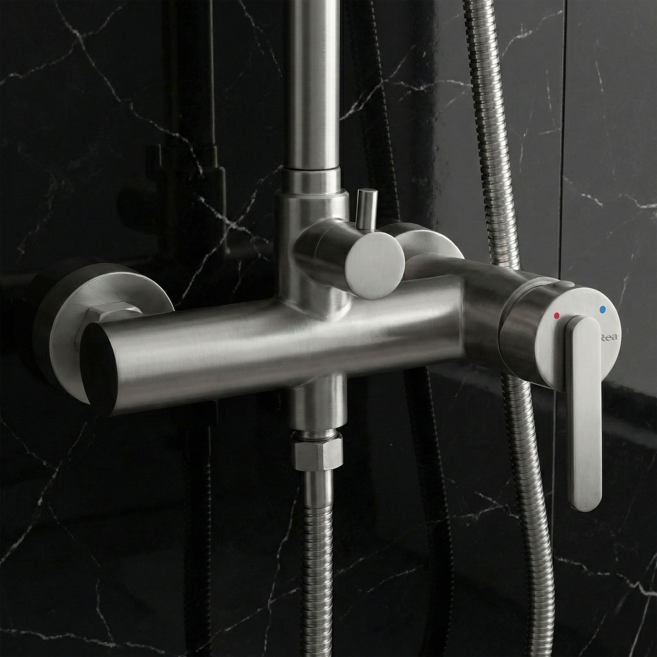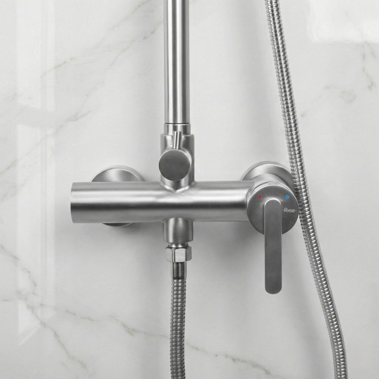 Descoperă dimensiunea luxoasă a dușului de zi cu zi cu setul de duș aparent Rea Ontario, care impresionează prin suprafața sa periată. Acest element elegant a fost proiectat pentru cei mai exigenți utilizatori, îmbinând estetica rafinată cu cea mai modernă tehnologie de finisare. Acoperirea PVD aplicată garantează nu doar un aspect impecabil, ci și o rezistență excepțională la zgârieturi și factori externi, astfel încât produsul își păstrează strălucirea ani la rând.Textură periată a suprafeței – oferă interiorului un caracter modern, mat, pe care se văd mai puțin urmele de apă și amprentele.Tehnologie de acoperire PVD – asigură durabilitate maximă a culorii și rezistență la deteriorări mecanice și coroziune.Pară de duș mare – oferă un jet larg și relaxant, pentru un moment de răsfăț ca într-un SPA profesionist.Duș de mână confortabil – permite spălarea precisă și facilitează curățarea zilnică a zonei de duș.Montaj aparent – permite o instalare eficientă și oferă băii un aer industrial, modern. Setul de duș aparent Rea Ontario este alegerea ideală pentru cei care caută soluții durabile, realizate la cele mai înalte standarde. Datorită combinației dintre para de duș și dușul de mână funcțional, fiecare duș devine o experiență confortabilă, adaptată nevoilor tale. Alegând un produs REA cu acoperire PVD, investești într-un design atemporal și într-o fiabilitate care va transforma baia ta pentru mulți ani. Culoare: Oțel periat Material: Alamă, ABS Metodă de montaj: Suprafaţă Tip baterie: Monocomandă Înălțime min. : 765 Înălțime max.: 1315 Pipa cadă: Nu Reglare a presiunii: Reglare a presiunii Sistem Anti-Calc: Sistem Anti-Calc Tehnologia de acoperire: PVD Distanța dintre racorduri: 150 Garantie: 24 luni
