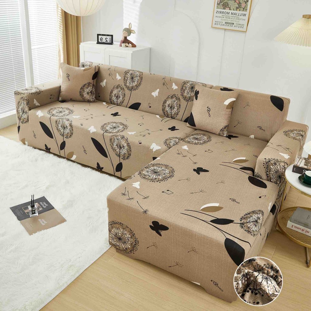 Set husa pentru coltar M + L, Elastica, Jojo Home, Bej, Papadii