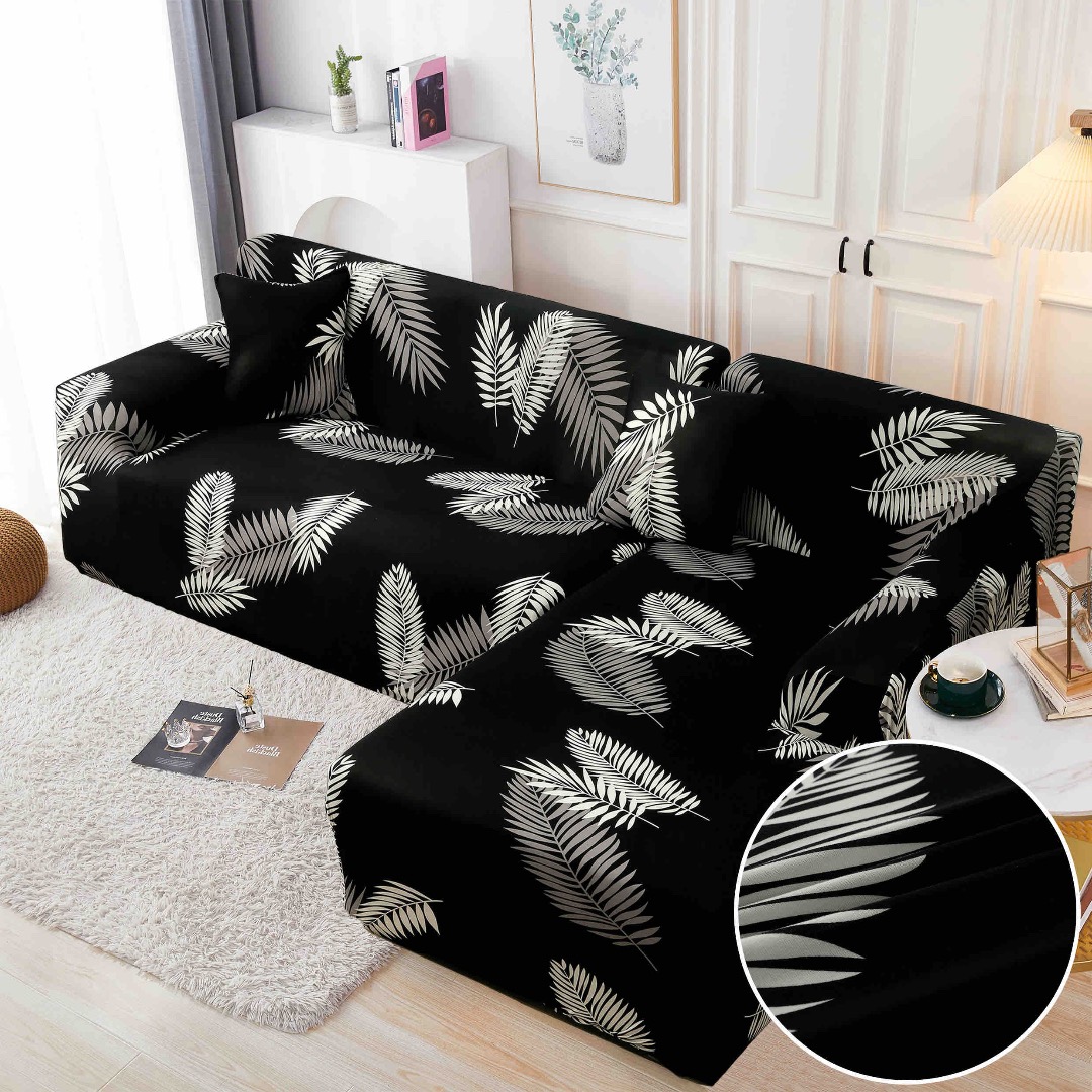 Set husa pentru coltar M + L, Elastica, Jojo Home, Negru, Frunze