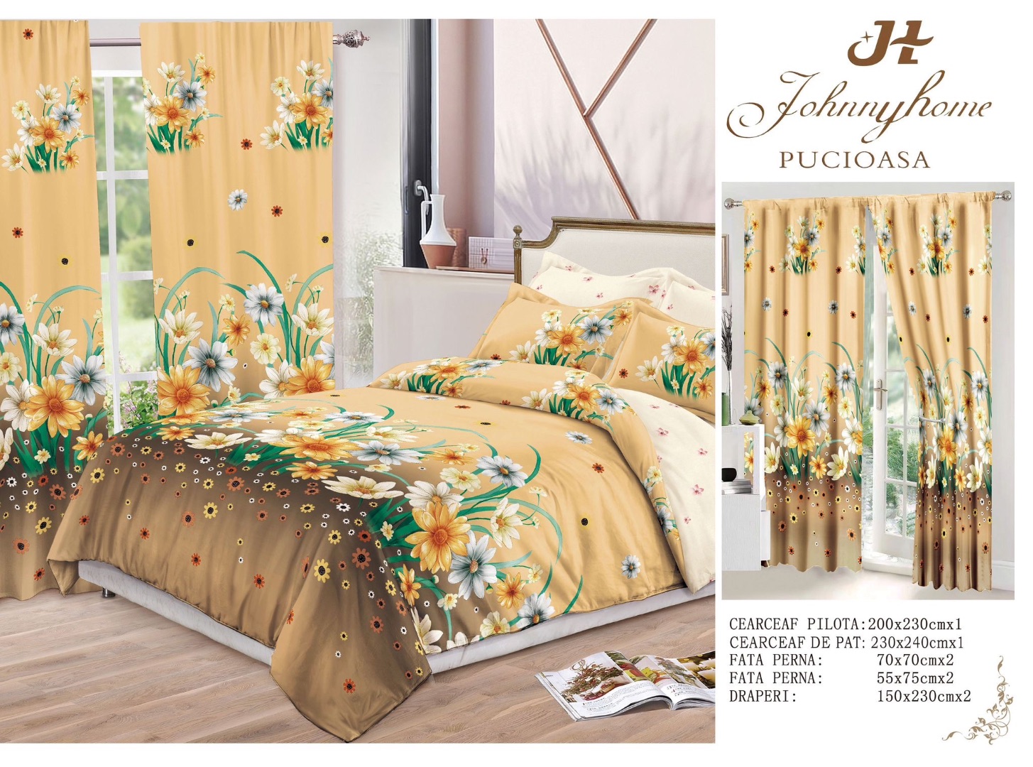 Set lenjerie de pat din bumbac finet, 8 piese, cu draperii incluse – Model fluturi Iti prezentam un set complet de lenjerie de pat din finet, format din 8 piese, inclusiv 2 draperii cu rejansa pentru o fixare usoara pe bara. Acest set unic are un design elegant si rafinat, care se regaseste atat pe lenjeria de pat, cat si pe draperii, oferind o armonie vizuala perfecta in dormitorul tau. Detalii produs:Material: 100% bumbac finet, cunoscut pentru textura sa moale si placuta la atingere