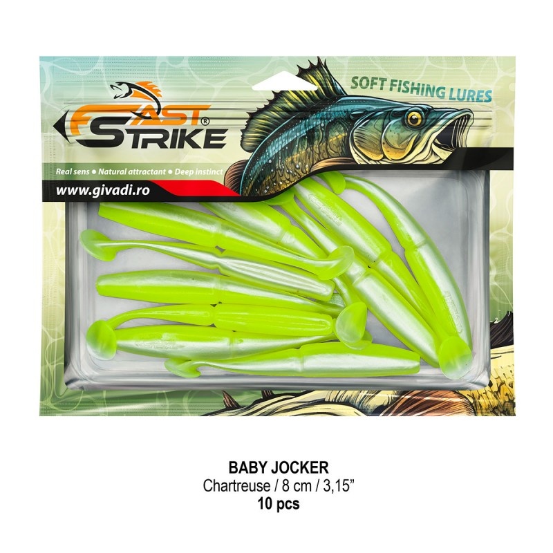 Fast Strike Baby Jocker 8 cm este o nălucă soft extrem de atractivă , concepută special pentru pescuitul la rapitori precum șalău, știucă, avat și chiar somn . Corpul segmentat în zona centrală îi oferă o evoluție naturală , asemănătoare unui pește pradă real, iar vibrațiile discrete, combinate cu reflexii agresive , declanșează atacuri chiar și în condiții dificile. Materialul premium, moale dar rezistent , păstrează perfect forma nălucii în timp și suportă multiple atacuri fără deteriorare. Baby Jocker este eficientă pe jig clasic, trena, ceaburaska, monturi articulate sau chiar chatterbait , ceea ce o face o alegere versatilă pentru orice tip de apă: lacuri, baraje sau râuri curgătoare . Nălucile sunt impregnate cu un miros atractiv , într-o formulă exclusivă, iar ambalarea în pungă cu fermoar + tavă rigidă menține forma perfectă și previne deformarea în timpul transportului. Fiecare shad poartă logo-ul Fast Strike turnat pentru garantarea originalității. ⭐ Caracteristici: ? Tip momeală: nălucă soft pentru rapitori ? Lungime: 8 cm ? Corp segmentat – evoluție naturală, vibrație realistă ? Material premium – flexibil, durabil, rezistent la UV ? Impregnată cu aromă atractivă ? Culoare: Chartreuse ⚙️ Compatibilă cu jig clasic, ceaburaska, chatterbait, monturi articulate ? Ambalare: blister cu tavă rigidă + pungă cu fermoar ? Conținut: 10 buc/blister ? Potrivită pentru șalău, știucă, biban, avat, somn