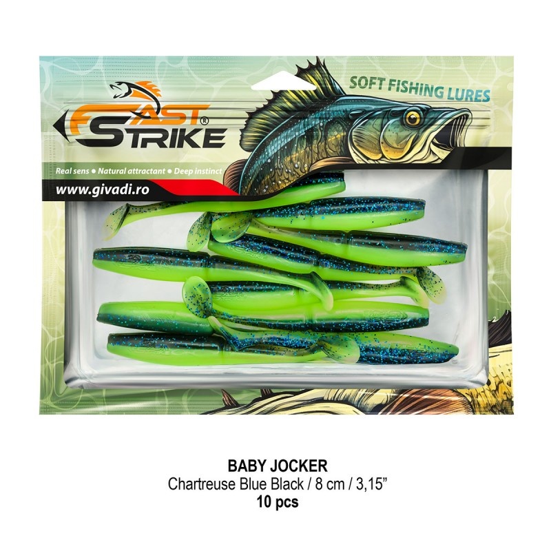 Fast Strike Baby Jocker 8 cm este o nălucă soft extrem de atractivă, concepută special pentru pescuitul la rapitori precum șalău, știucă, avat și chiar somn. Corpul segmentat în zona centrală îi oferă o evoluție naturală, asemănătoare unui pește pradă real, iar vibrațiile discrete, combinate cu reflexii agresive, declanșează atacuri chiar și în condiții dificile. Materialul premium, moale dar rezistent, păstrează perfect forma nălucii în timp și suportă multiple atacuri fără deteriorare. Baby Jocker este eficientă pe jig clasic, trena, ceaburaska, monturi articulate sau chiar chatterbait, ceea ce o face o alegere versatilă pentru orice tip de apă: lacuri, baraje sau râuri curgătoare. Nălucile sunt impregnate cu un miros atractiv, într-o formulă exclusivă, iar ambalarea în pungă cu fermoar + tavă rigidă menține forma perfectă și previne deformarea în timpul transportului. Fiecare shad poartă logo-ul Fast Strike turnat pentru garantarea originalității. ⭐ Caracteristici: ? Tip momeală: nălucă soft pentru rapitori ? Lungime: 8 cm ? Corp segmentat – evoluție naturală, vibrație realistă ? Material premium – flexibil, durabil, rezistent la UV ? Impregnată cu aromă atractivă ? Culoare: Chartreuse Blue Back ⚙️ Compatibilă cu jig clasic, ceaburaska, chatterbait, monturi articulate ? Ambalare: blister cu tavă rigidă + pungă cu fermoar ? Conținut: 10 buc/blister ? Potrivită pentru șalău, știucă, biban, avat, somn