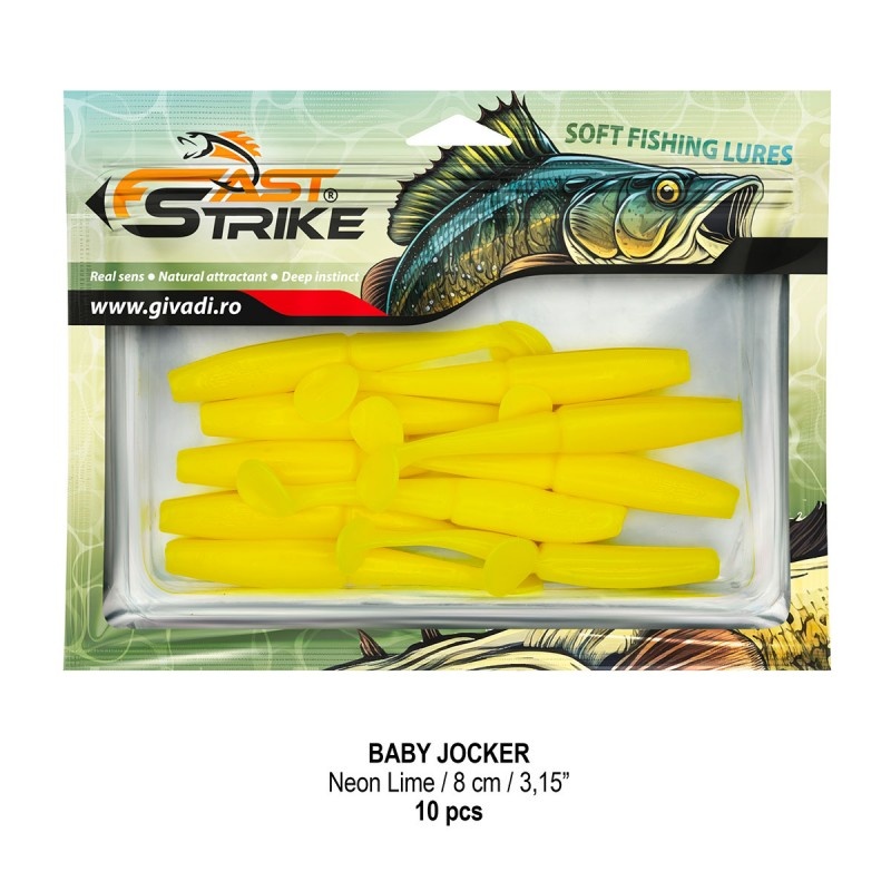 Fast Strike Baby Jocker 8 cm este o nălucă soft extrem de atractivă, concepută special pentru pescuitul la rapitori precum șalău, știucă, avat și chiar somn. Corpul segmentat în zona centrală îi oferă o evoluție naturală, asemănătoare unui pește pradă real, iar vibrațiile discrete, combinate cu reflexii agresive, declanșează atacuri chiar și în condiții dificile. Materialul premium, moale dar rezistent, păstrează perfect forma nălucii în timp și suportă multiple atacuri fără deteriorare. Baby Jocker este eficientă pe jig clasic, trena, ceaburaska, monturi articulate sau chiar chatterbait, ceea ce o face o alegere versatilă pentru orice tip de apă: lacuri, baraje sau râuri curgătoare. Nălucile sunt impregnate cu un miros atractiv, într-o formulă exclusivă, iar ambalarea în pungă cu fermoar + tavă rigidă menține forma perfectă și previne deformarea în timpul transportului. Fiecare shad poartă logo-ul Fast Strike turnat pentru garantarea originalității. ⭐ Caracteristici: ? Tip momeală: nălucă soft pentru rapitori ? Lungime: 8 cm ? Corp segmentat – evoluție naturală, vibrație realistă ? Material premium – flexibil, durabil, rezistent la UV ? Impregnată cu aromă atractivă ? Culoare: Neon Lime ⚙️ Compatibilă cu jig clasic, ceaburaska, chatterbait, monturi articulate ? Ambalare: blister cu tavă rigidă + pungă cu fermoar ? Conținut: 10 buc/blister ? Potrivită pentru șalău, știucă, biban, avat, somn